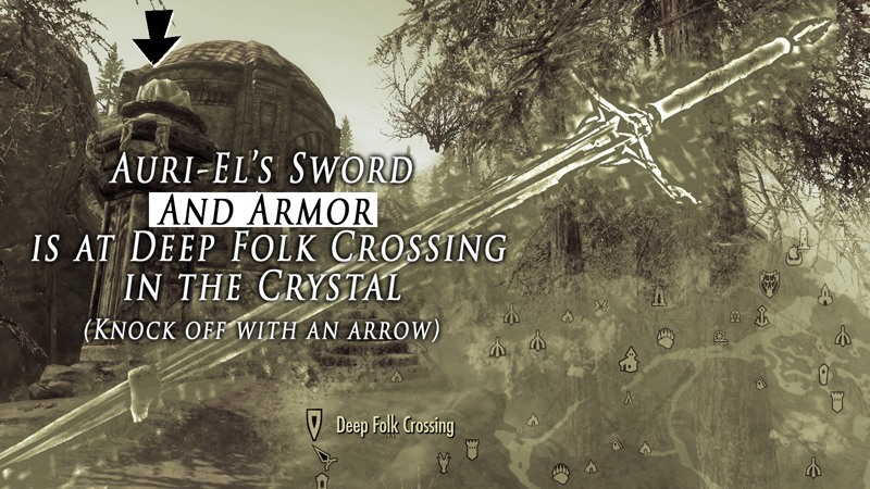 Мод добавляет в игру броню, оружие и корону Ауриэля. Все это вы сможете найти в локации Переправа Глубинного Народа. Более точное местонахождение смотрите на картинке "карта" в архиве.