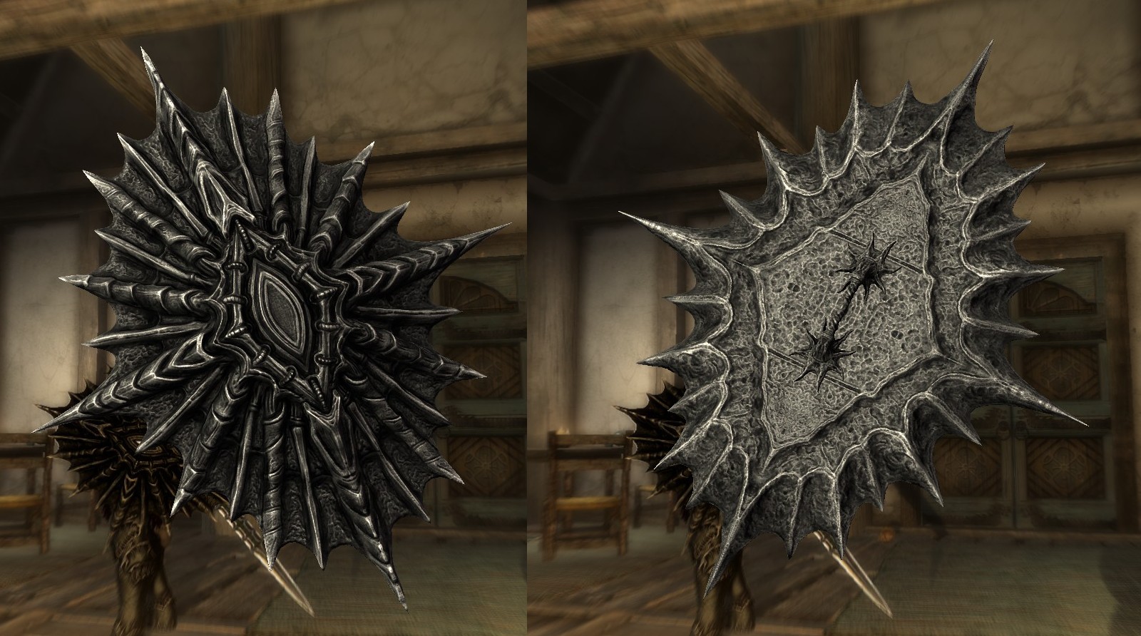 Защитные показатели щита превосходят даэдрический щит на 2 ед, то есть они равны 38. В пробужденном состоянии защита возрастает еще на 1 ед. Щит относится к классу тяжелой брони.