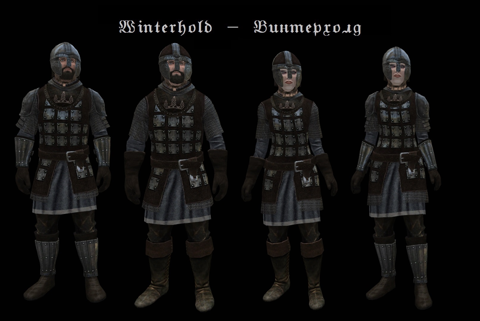 Наверное, многих хотя бы немного раздражал внешний вид скайримской стражи, которые напоминают скорее клонов из ЗВ, чем брутальных северян-защитников практически независимых друг от друга холдов. Иле же сидя в зимний вечер в теплом уютном кресле пробирало морозом при виде стражника Винтерхолда одетого в кольчугу на голое тело. Все это исправить - является изначальной целью данного мода, кроме этого еще привнести максимум разнообразия в экипировку стражи балансируя в рамках лора и реалистичности.