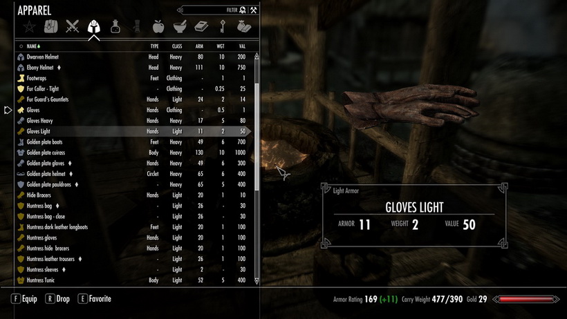 * Мод добавляет пару легких и тяжелых перчаток в игру. Для тех кто, любит играть в простой одежде, и при этом иметь броню.