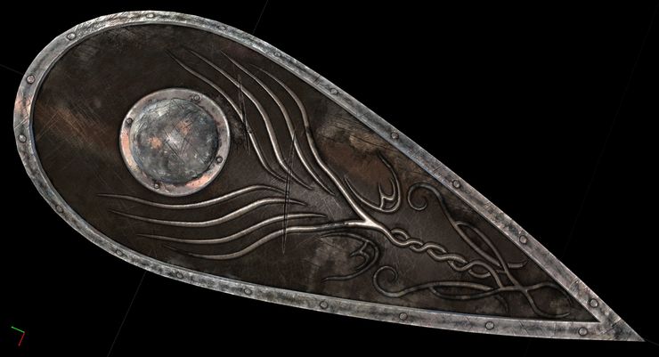 Но кое-что от древа всё же осталось - большой кусок коры, который был найден неизвестным путешественником. Он придал ему форму каплевидного щита, и поместил на него символ древа, дабы увековечить память о бывшем носителе этой коры. С тех пор щит был передавался через поколения, как наследие.