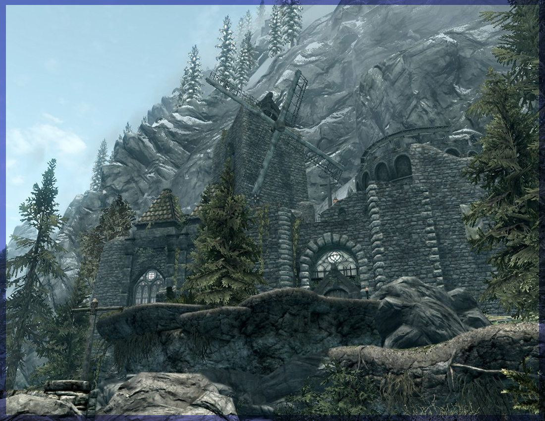 Бэквуд расположен на вершине зелёного холма недалеко от Ривервуда, сразу после моста на Вайтран. Это старое поместье, когда-то занятое членом Совета Старейшин, чей амулет можно найти в обеденном зале, а письмо - в кабинете. Дом служит мельницей Ривервуда, но также он располагает обширным садом и смотровой площадкой. Внутренние помещения оборудованы интересными предметами, такими как зеркало Прорицателя (только для красоты, честно), есть необычный стол зачарования, несколько стендов и витрин для оружия, и, кроме того, почти во всём поместье устроено атмосферное освещение. В Бэквуде достаточно места для хранения вещей, мебели, элементов из DLC Hearthfire, стоек для оружия и тому подобного, и притом ровно столько, сколько необходимо для обычного дома. Я попытался сделать его настолько подходящим под антураж Скайрима, насколько мог с моими подручными ресурсами, так что он не слишком маленький, но и не слишком большой для игрока. В поместье действительно нет некоторых элементов вроде личной кузницы, но я пренебрёг ими, чтобы вы хоть иногда выходили в город, который расположен всего в двух шагах от вас. Бэквуд оснащён одной двуспальной кроватью для хозяина и одной детской кроваткой на случай, если вам захочется завести супруга, спутника и (или) ребёнка. Я рекомендую использовать моды с опциями "взять ребёнка с собой/сделать это место домом". Внешние и внутренние зоны поместья обработаны, так что не должно возникнуть проблем. Оно не конфликтует со стандартным ландшафтом.