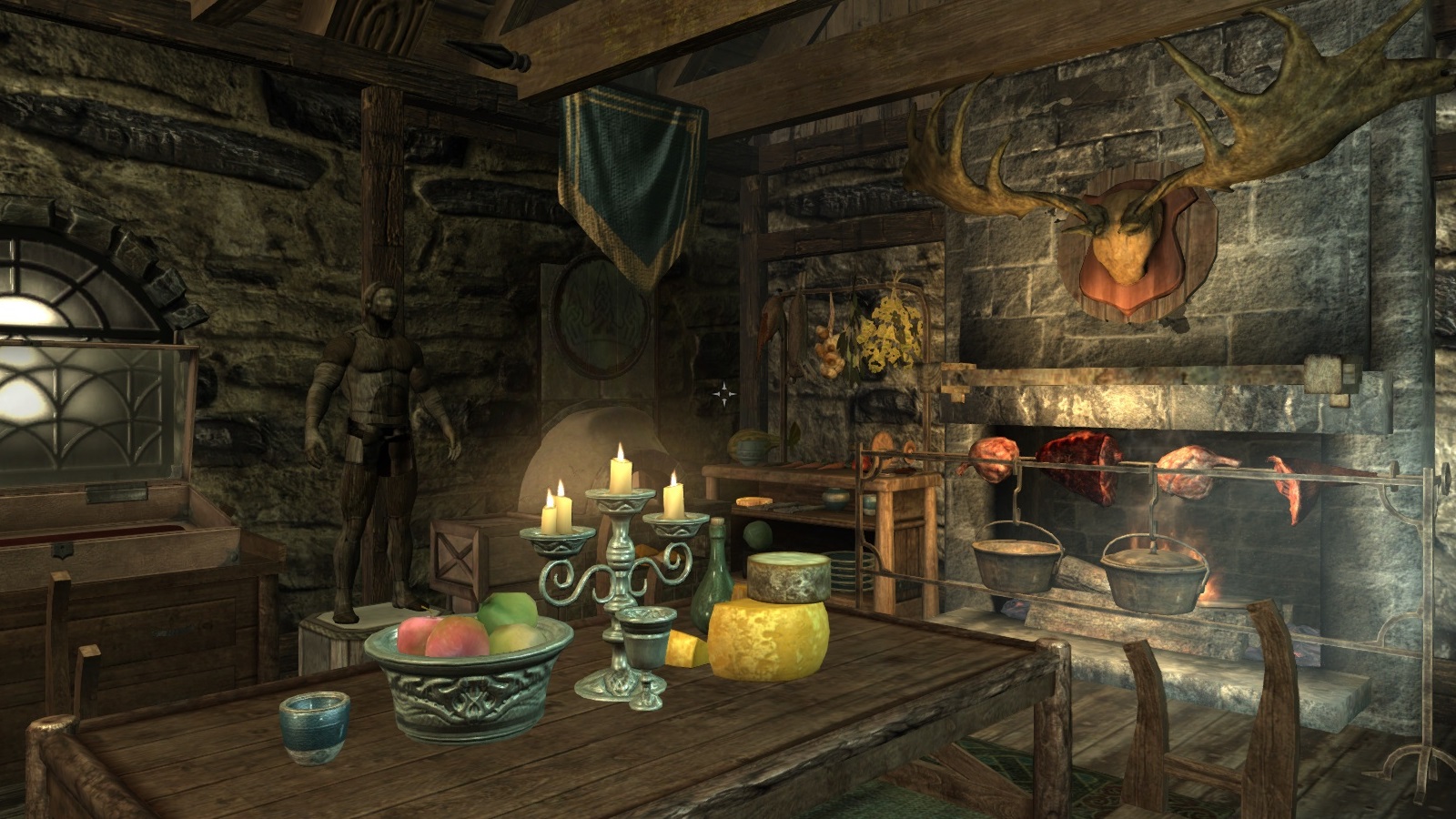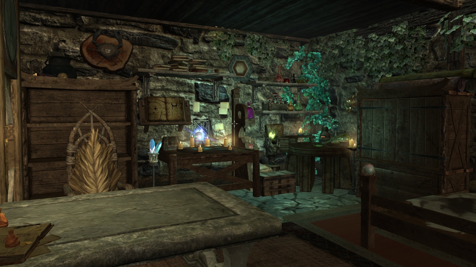 Эстетические ресурсы из Dragonborn, в том числе базальтовые скалы, данмерская мебель и пара нетчей.