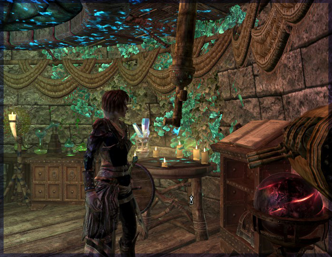 Я попытался сделать дом не выходящим из общего антуража Скайрима, поэтому он выполнен в имперско-данмерском стиле, прямо как архитектура в Вороньей Скале. Обсерватория нерабочая, рычаги только меняют освещение и в большей степени сделаны для красоты.