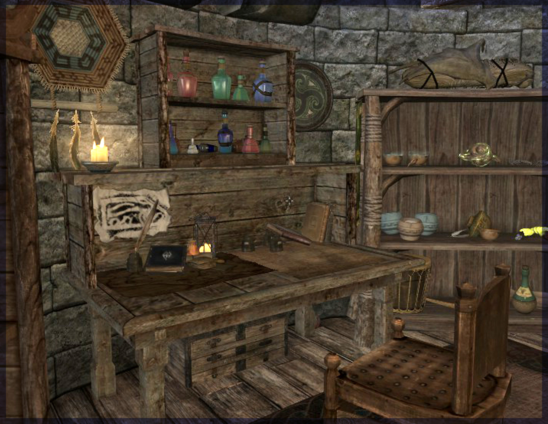 - блок для рубки дерева, алхимическая станция, пентаграмма душ и стол для создания посохов из DLC Dragonborn