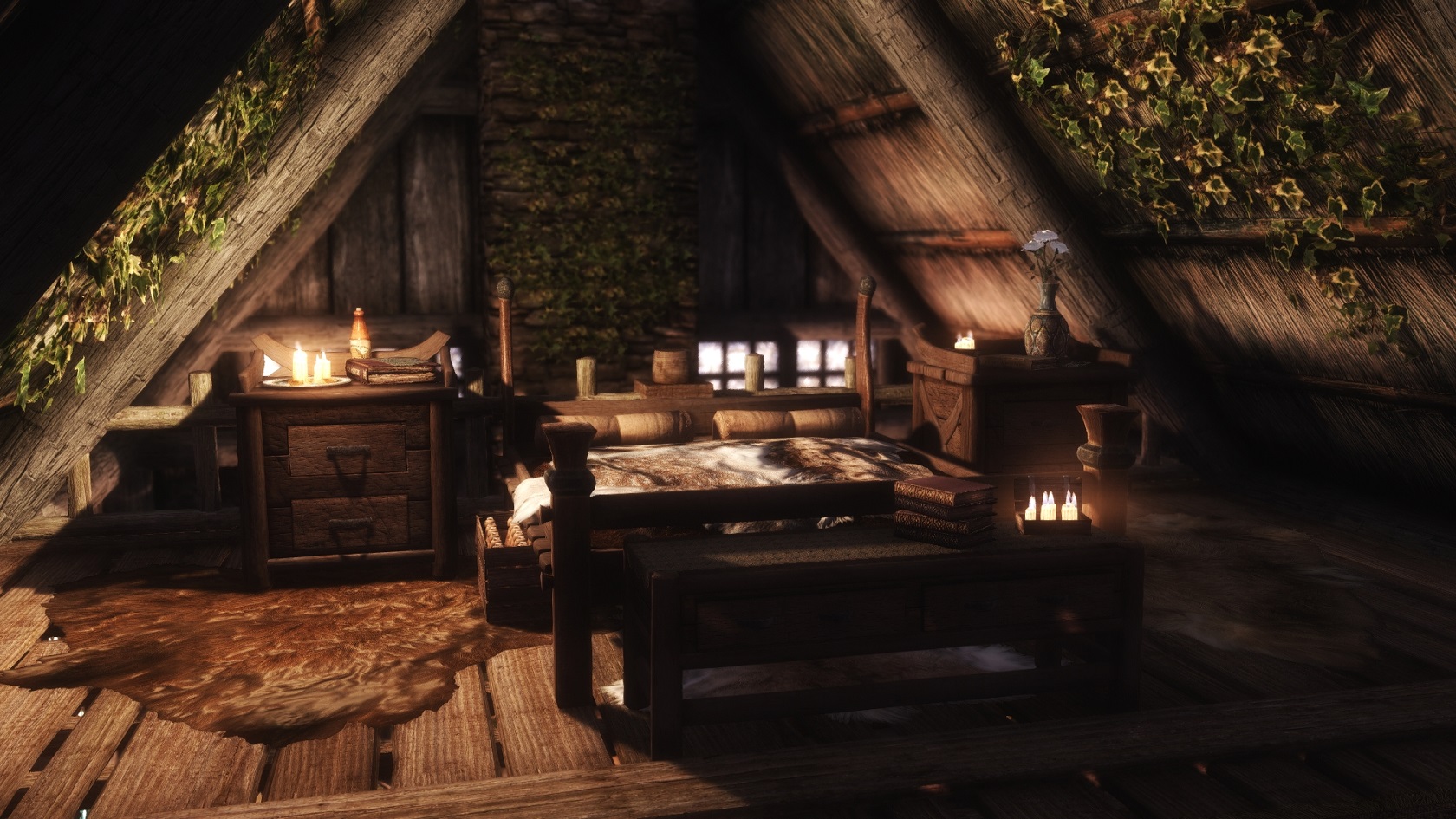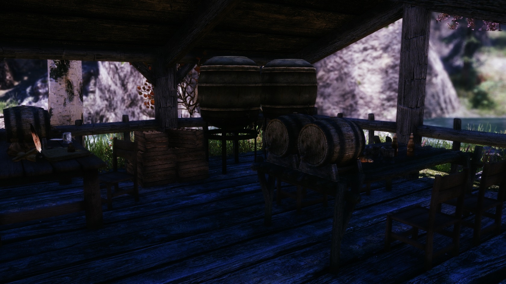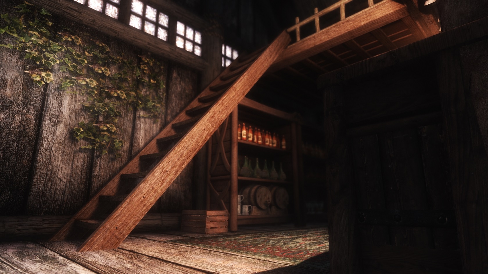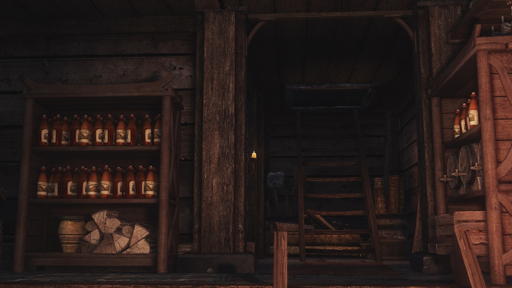 Алкоголь - главная тема этого места, повсюду вы можете найти бутылки меда: на стенах, на полу, на столах, под кроватью, на террасе, на которой вы даже наткнетесь на мини-медоварню (правда, варить мед в ней вы не сможете). Так что, если ваш персонаж любит выпить, этот дом идеален для него.