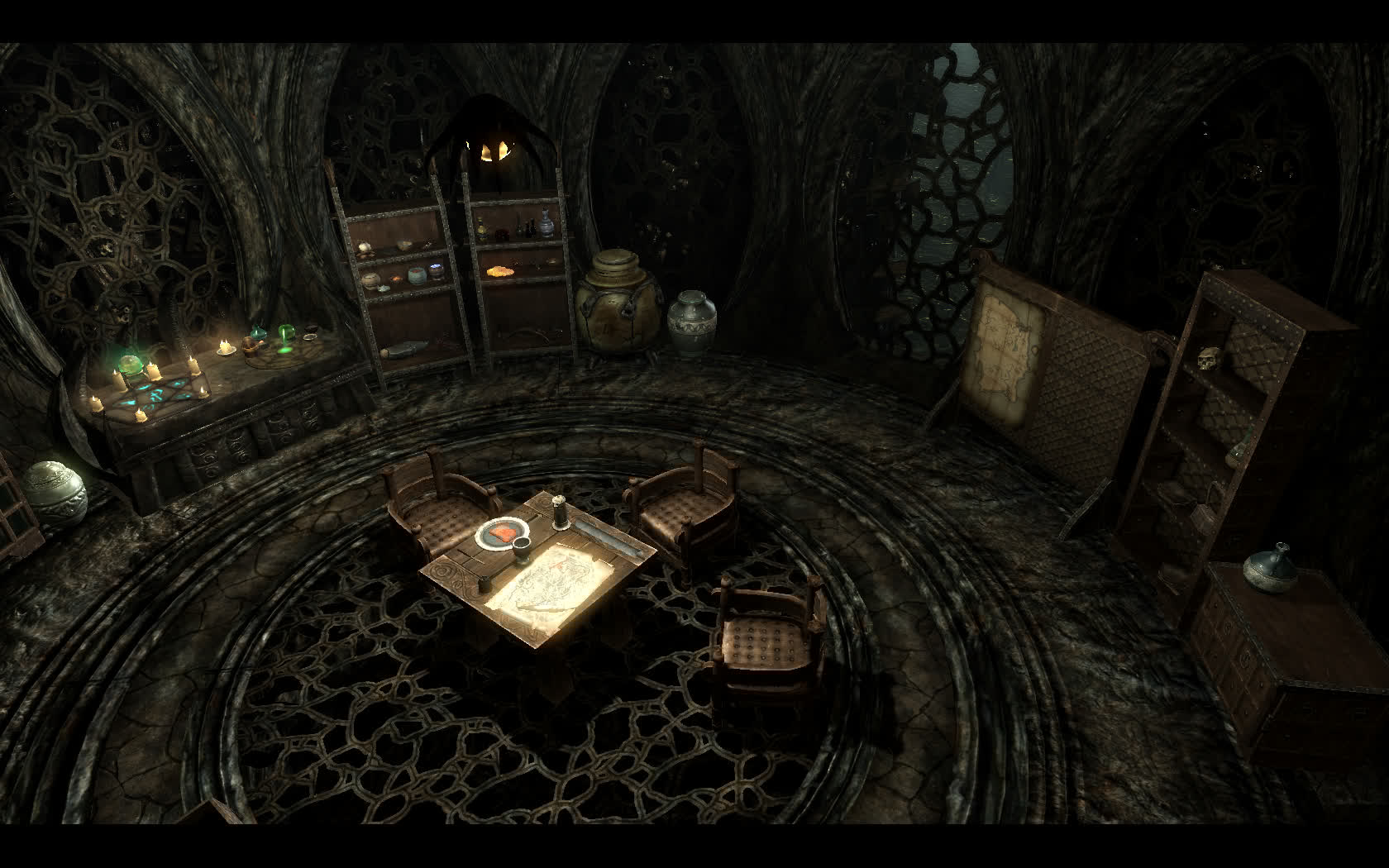 Мод добавляет дом для игрока, который всегда с собой. Дом выполнен в стилистике Апокрифа - плана Даэдрического Принца запретных знаний. Чтобы попасть в него просто прочтите книгу "Чёрная книга - Усадьба". Книга автоматически добавляется в инвентарь после убийства Мирака или если он уже мёртв на момент установки мода. Для возвращения надо снова прочитать Чёрную книгу.