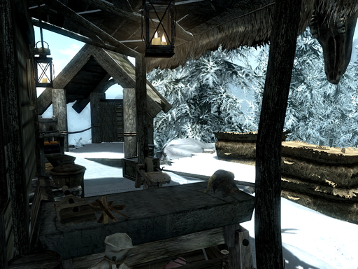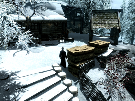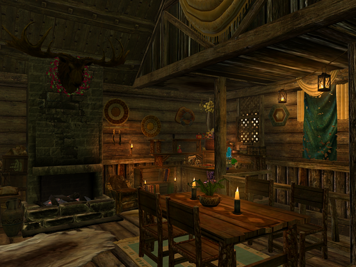 Дом теперь находится ближе к цивилизации, фактически в центре Скайрима, (скриншот - есть) но при этом в атмосферности не теряет первозданности, а именно что он затерян в снегах. Немного убрал декора со стен и полок, поскоку играю с позиционером. Именные витрины мягко говоря разочаровали своими багами. Теперь шмот вручную токо позиционером размещаю.