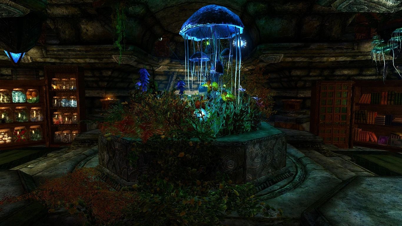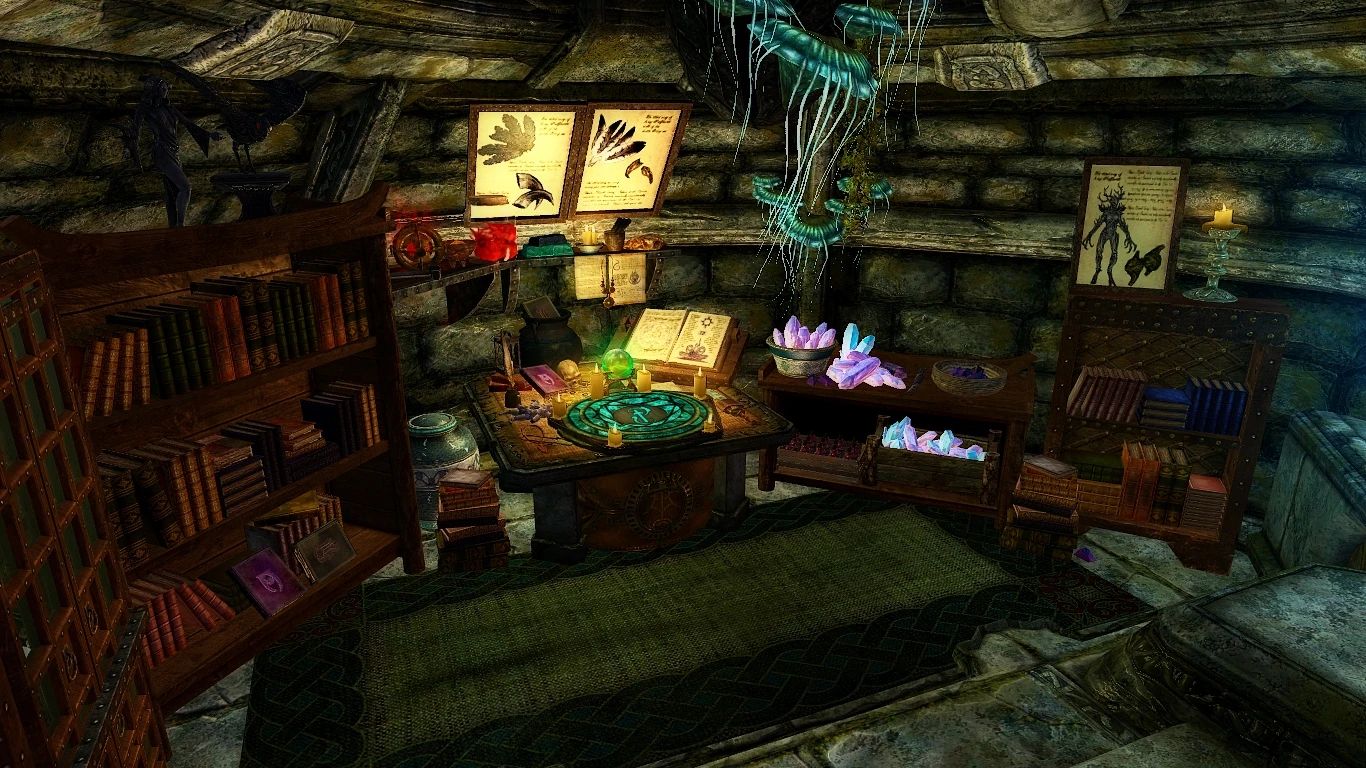 Дом состоит из прихожей со спиральной лестницей, внутренней комнаты с кухней и небольшим кабинетом, лабораторий, спален, + подземелья, включающего кузницу, баню, винный погреб и секретную комнату для сокровищ.