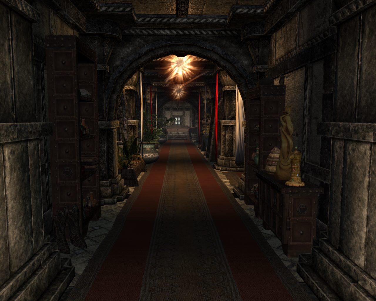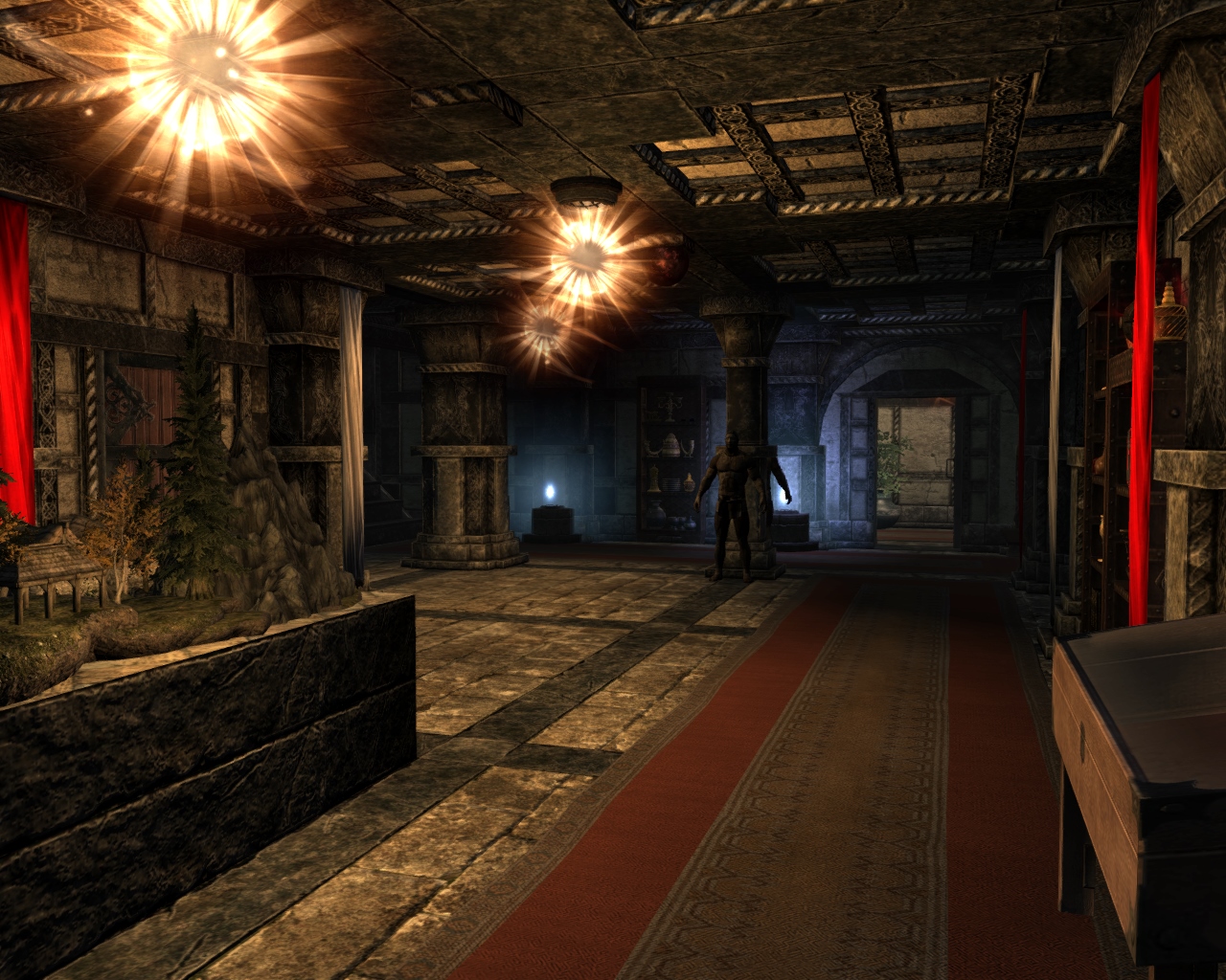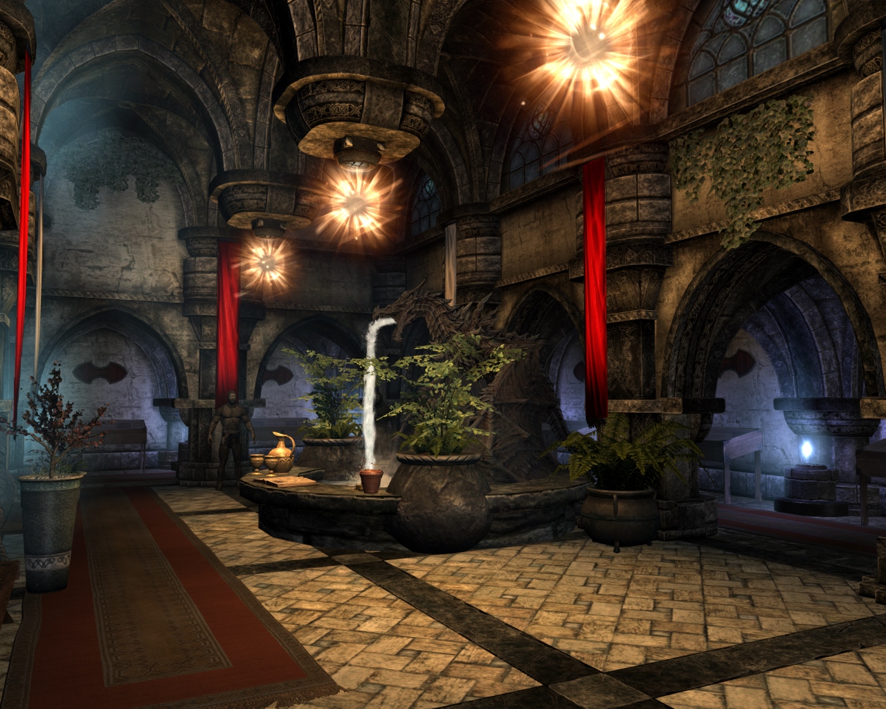 - Зал призыва, в котором находится торговец даэдрическими доспехами и у которого можно обменять души драконов на перки.