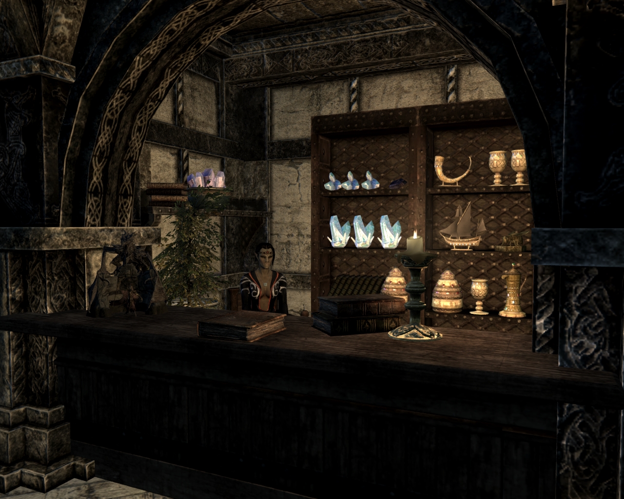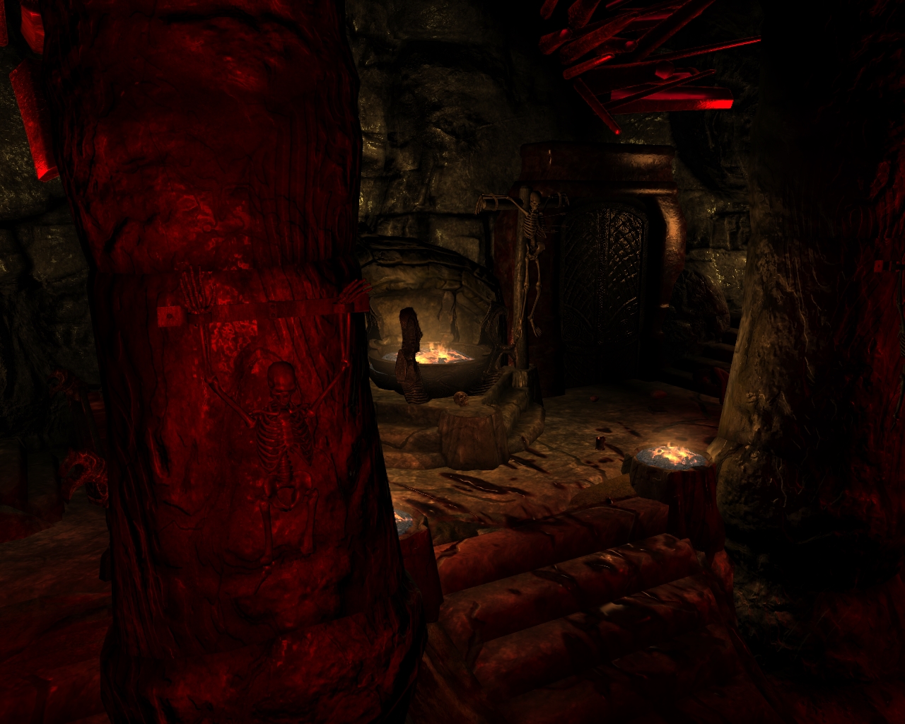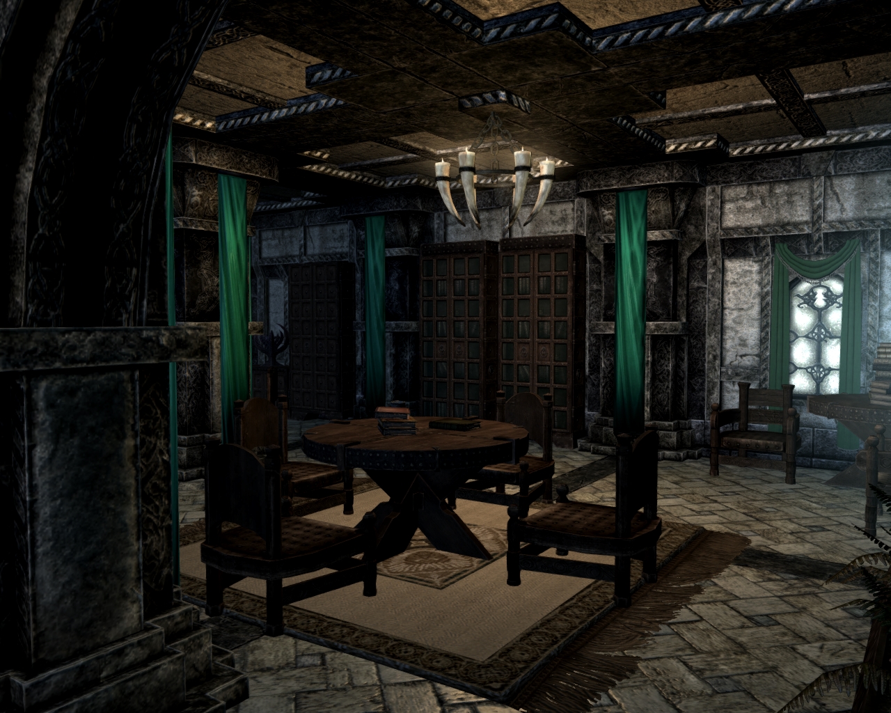 - Зал призыва, в котором находится торговец даэдрическими доспехами и у которого можно обменять души драконов на перки.