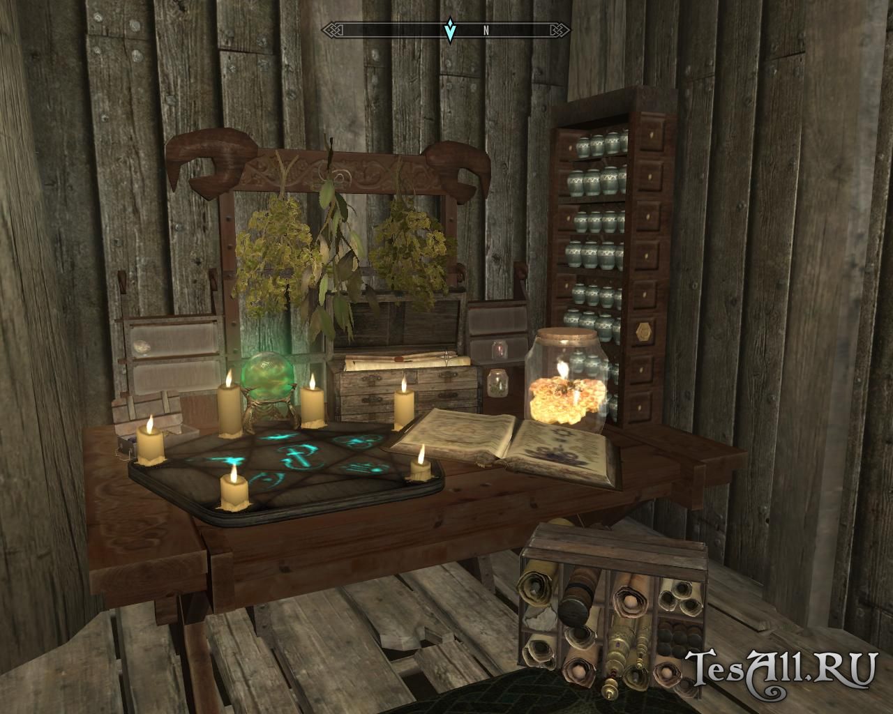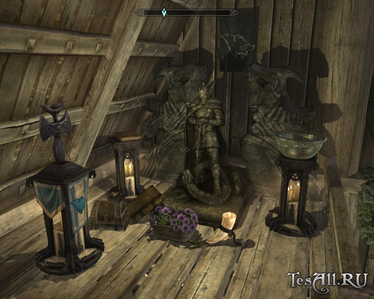 Вдобавок, вы можете обставить дом в соответствии с собственными предпочтениями. Ваш персонаж — маг, постигающий тайные искусства? Охотник, привыкший жить на открытом воздухе и гордиться трофеями? Вор, желающий обставить дом как можно шикарнее? Ассасин, поклоняющийся Матери Ночи и обожающий яды? Или нечто среднее? В любом случае этот дом для вас. Вы можете сочетать эти темы, как пожелаете. Также вы можете украсить дом флагами Братьев Бури или Империи, а ещё сделать на втором этаже небольшое святилище Талосу (Братья Бури), Восьмерым (Империя) или всем девятерым богам.