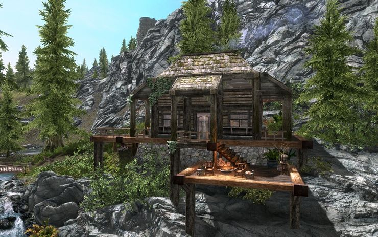 В папке Опционально находится версия мода, в которой можно запирать входные двери изнутри, чтобы к вам не мог никто пройти. Но в обоих случаях от дракона вы на первом этаже не спасетесь - так как это экстерьер, драконье пламя игнорирует стены. Но вы же не собирались бегать от каких-то там драконов? В этой версии домик заперт, и чтобы пробраться туда, используйте tcl, это понадобится один раз.