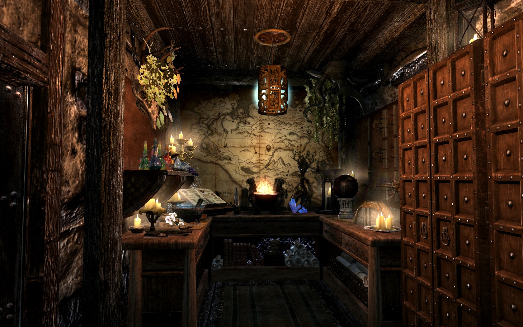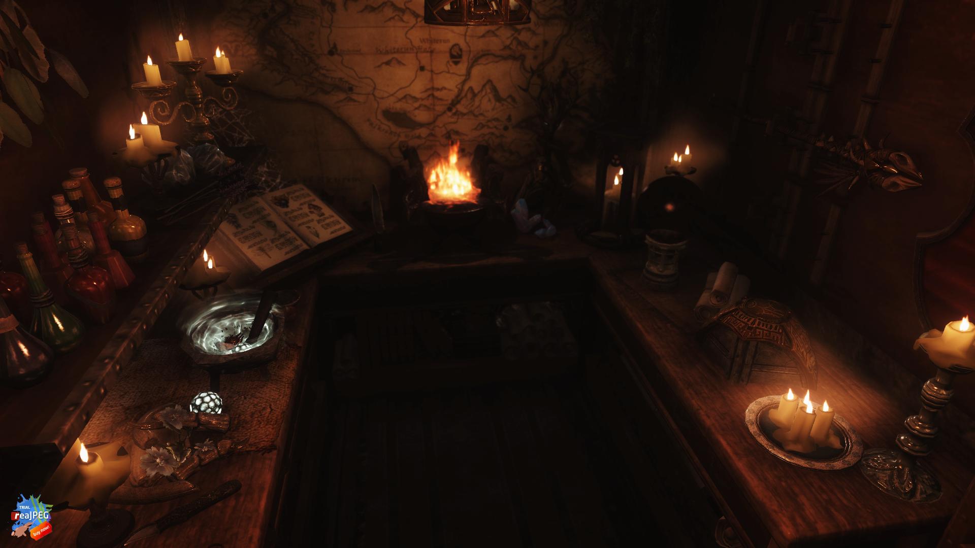 - Вместо громоздких столов алхимией можно заниматься, используя красивую ступку и пестик, а зачарованием - через специальную сферу.