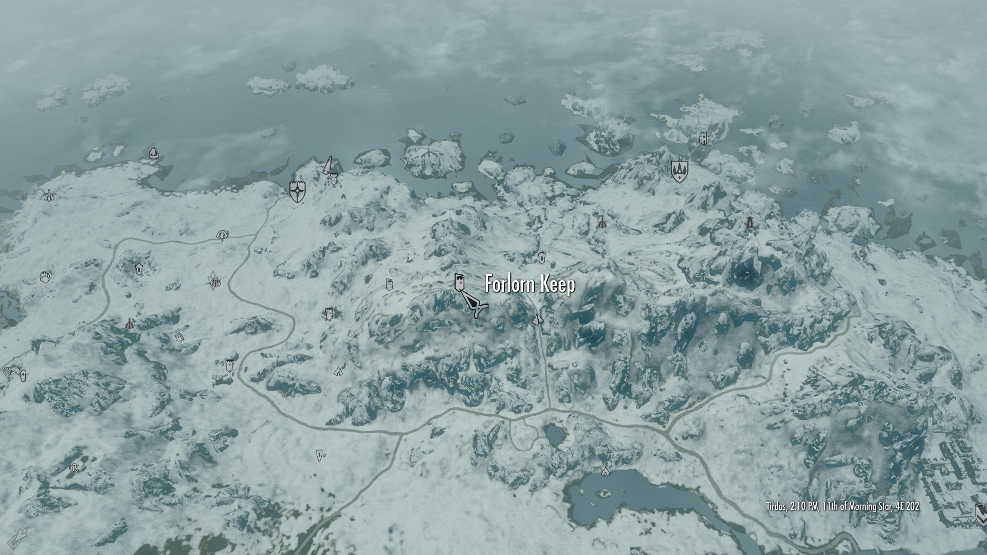 Башня находится примерно между Данстаром и Виндхельмом, но южнее (карта среди скриншотов). Маркер появится сразу.