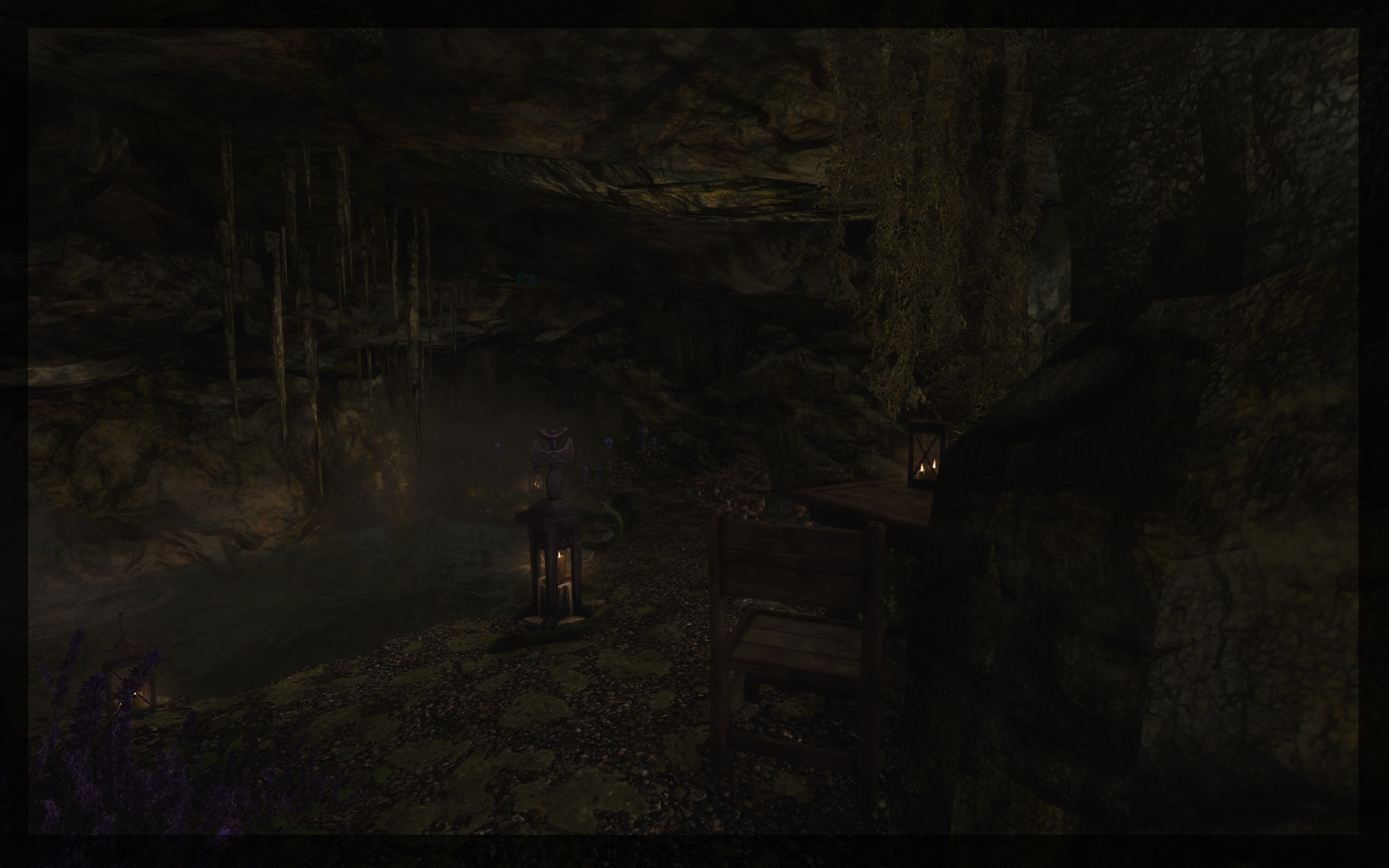 Очаровательный пруд с небольшим водопадом, сталактиты, насекомые, цветы и святилище Талоса.