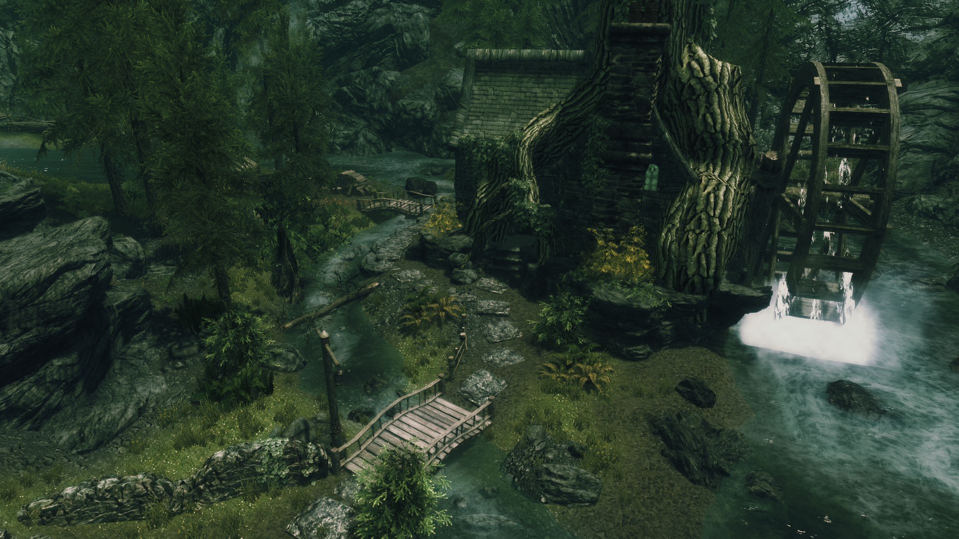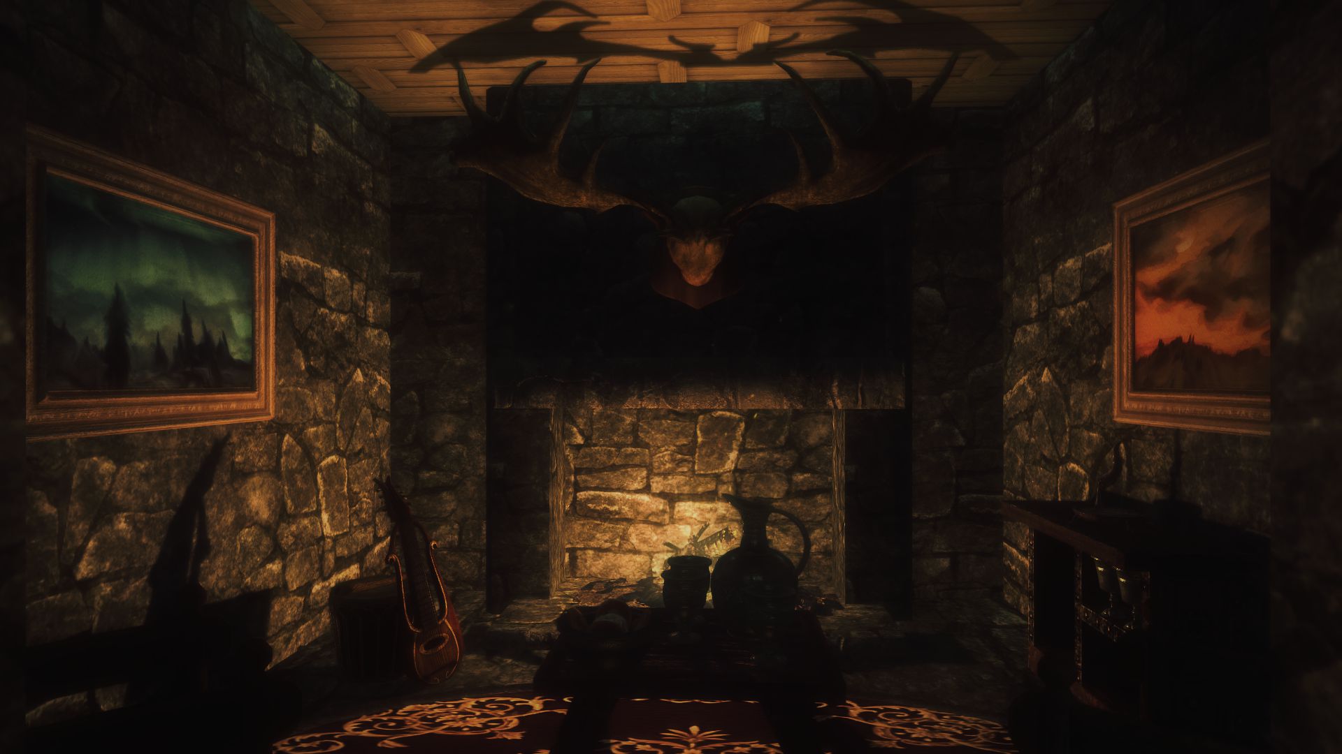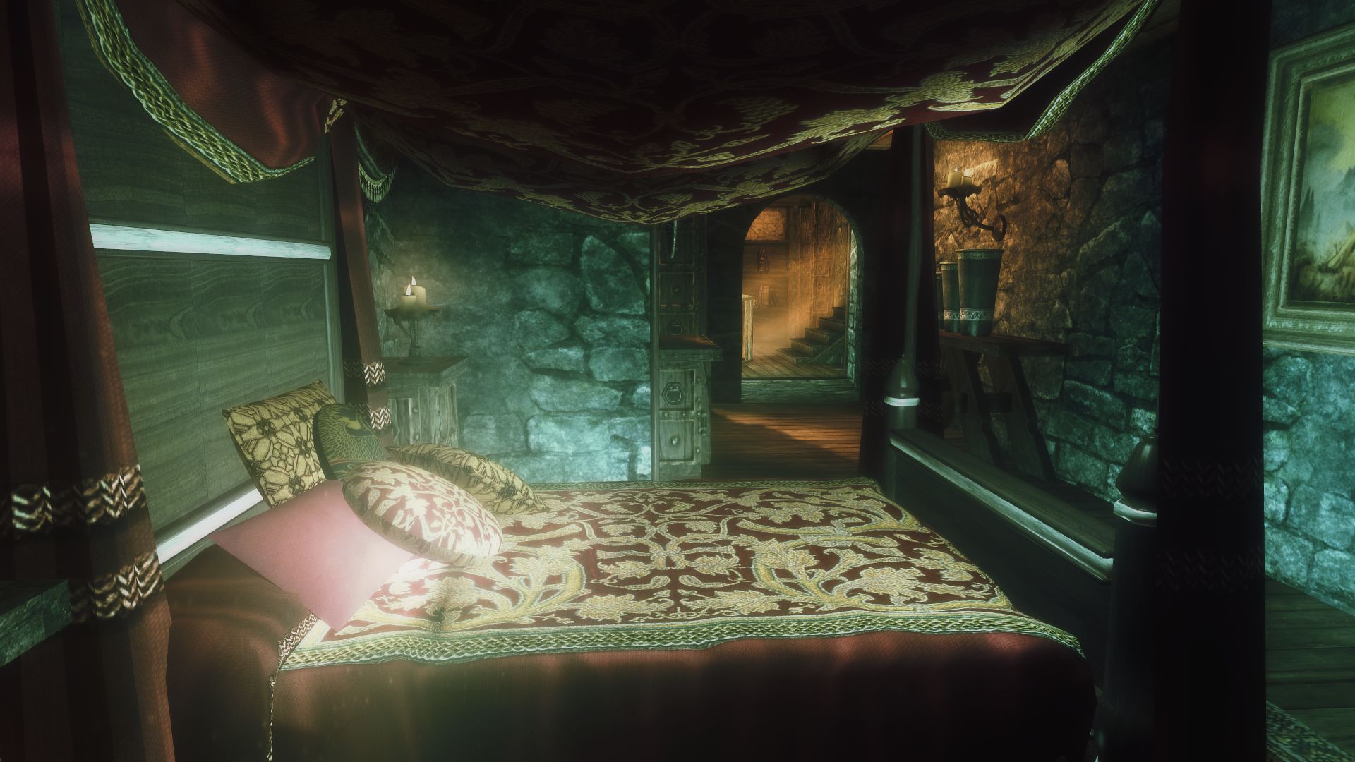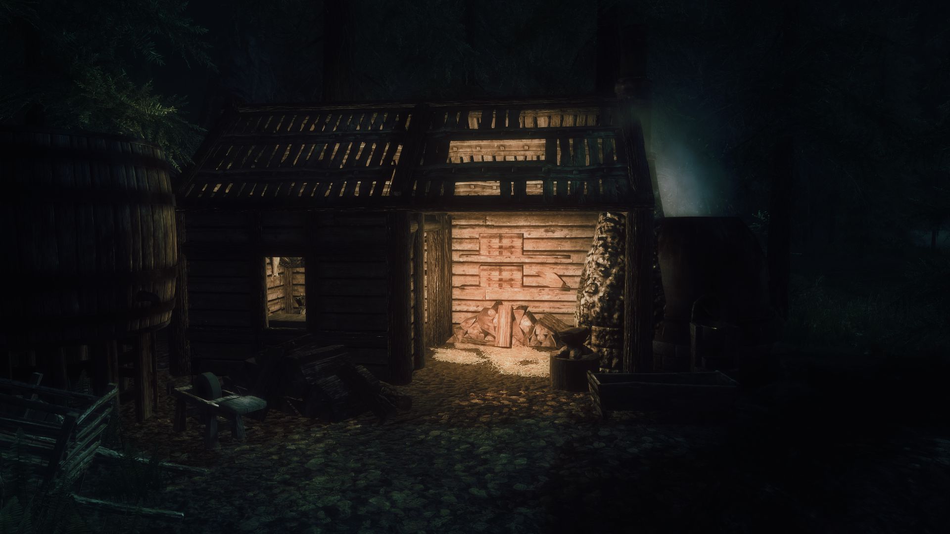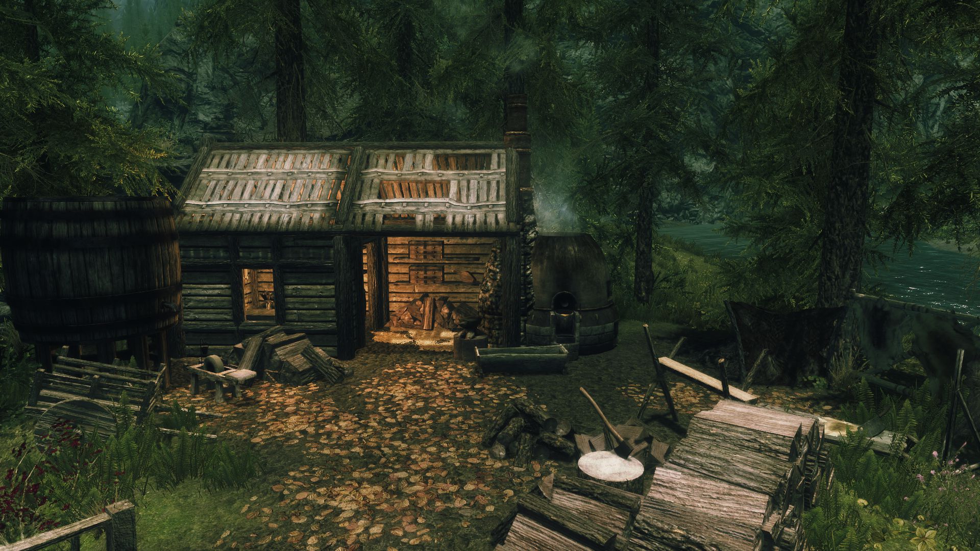 А теперь о минусах, то бишь о плохом. При входе в дом вы сразу натыкаетесь на манекен :dash2: , что довольно неприятно, а натыкаетесь вы потому что проходы довольно узкие (вдвоем разойтись проблематично и лучше не бегать), фонарь над подвалом висит довольно низко, и ГГ невольно его "обходит" (шишек уже наверное куча :gopnek: ), постоянный респаун рыбок и стрекоз при выходе из дома вносит дисбаланс в прокачку алхимии :suicide: , диван в подвале (предпоследний скрин) смотрится не к месту и закрывает часть тумбочек :shok: . И вам придется убить медведя :facepalm что бы быстро оттуда переместится (хотя это наверное, уже плюс).