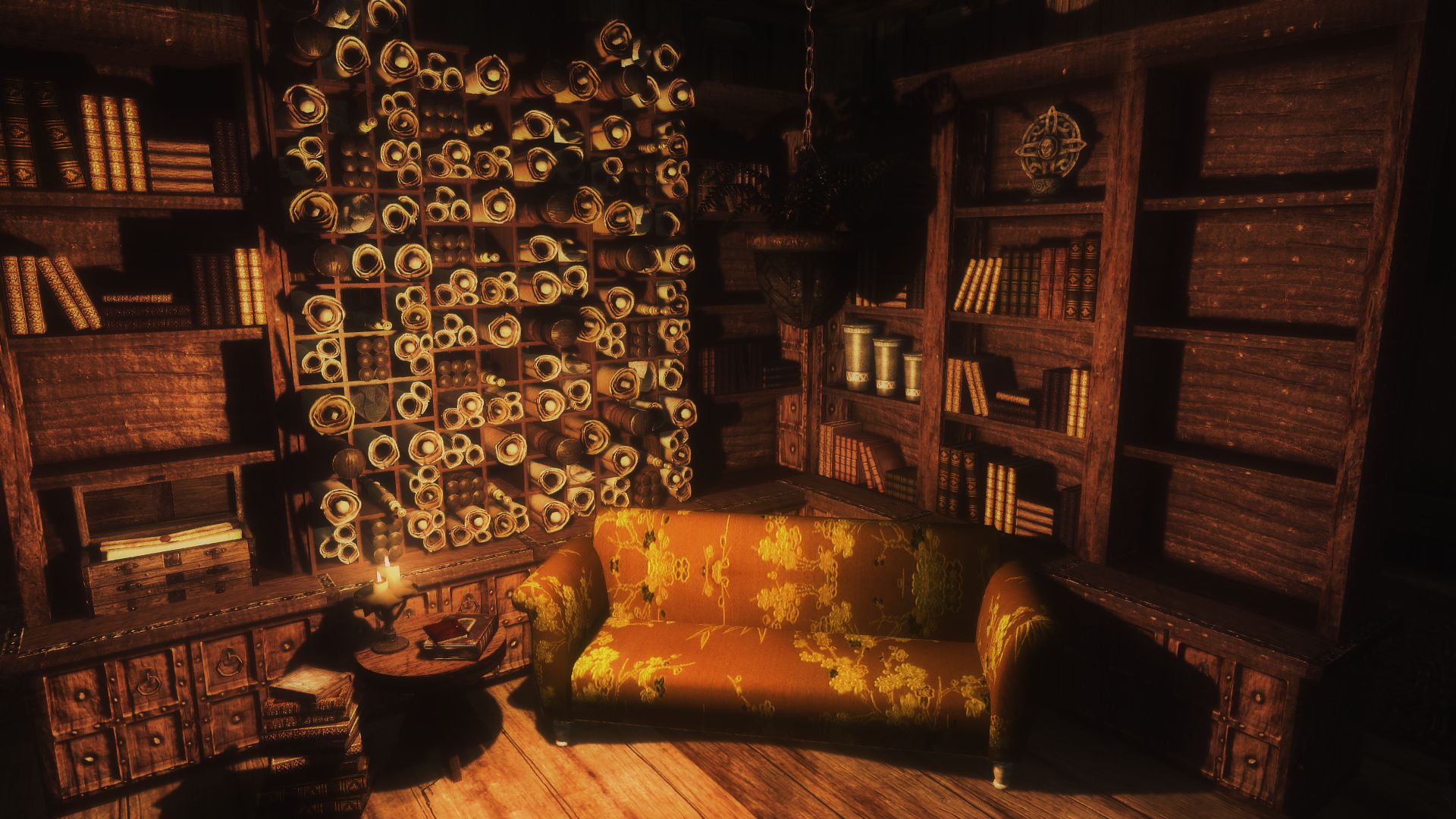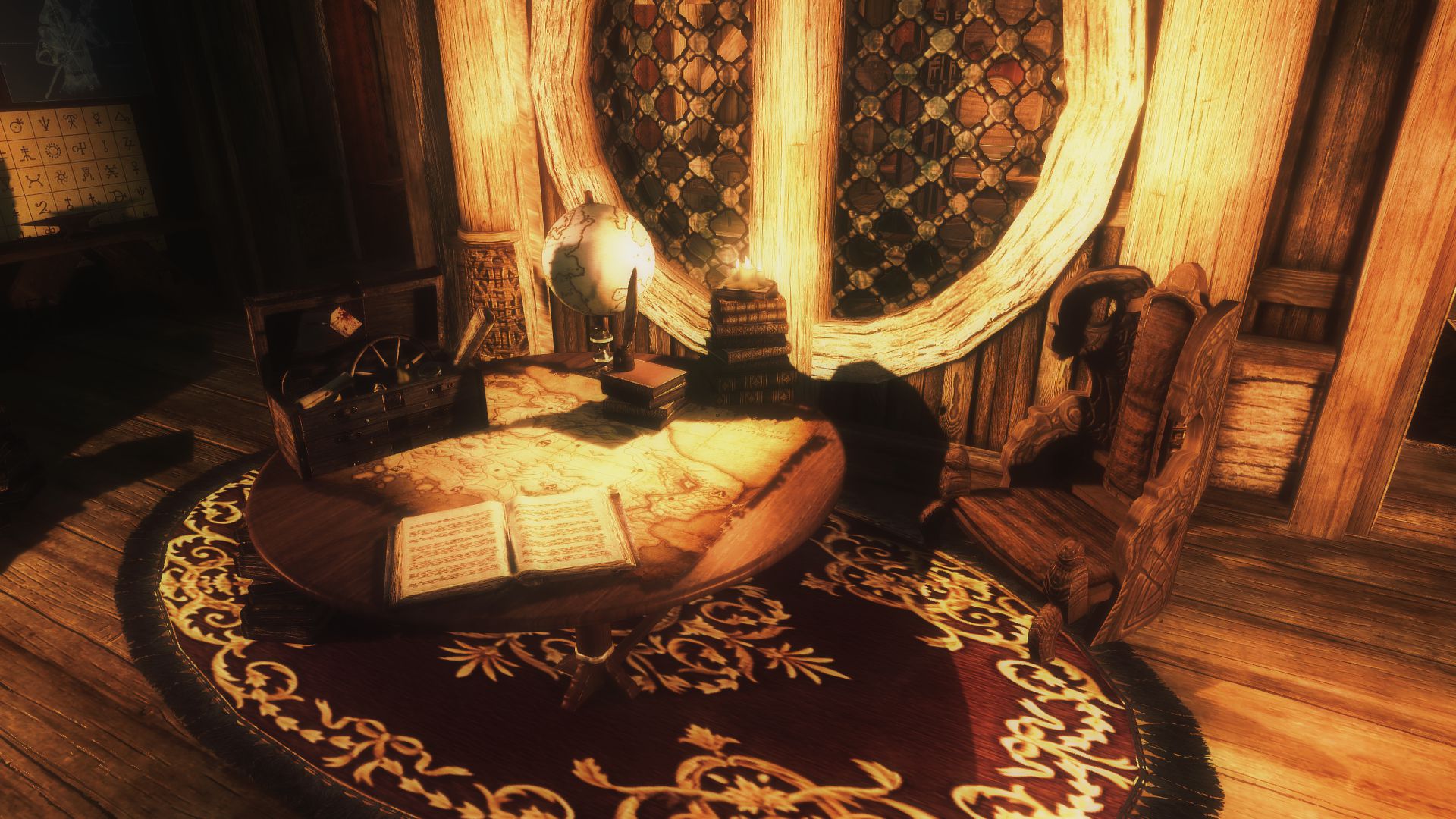 - В лабораторию входят книжные полки, хранилище материалов для зачарования и собственно, шар для него же