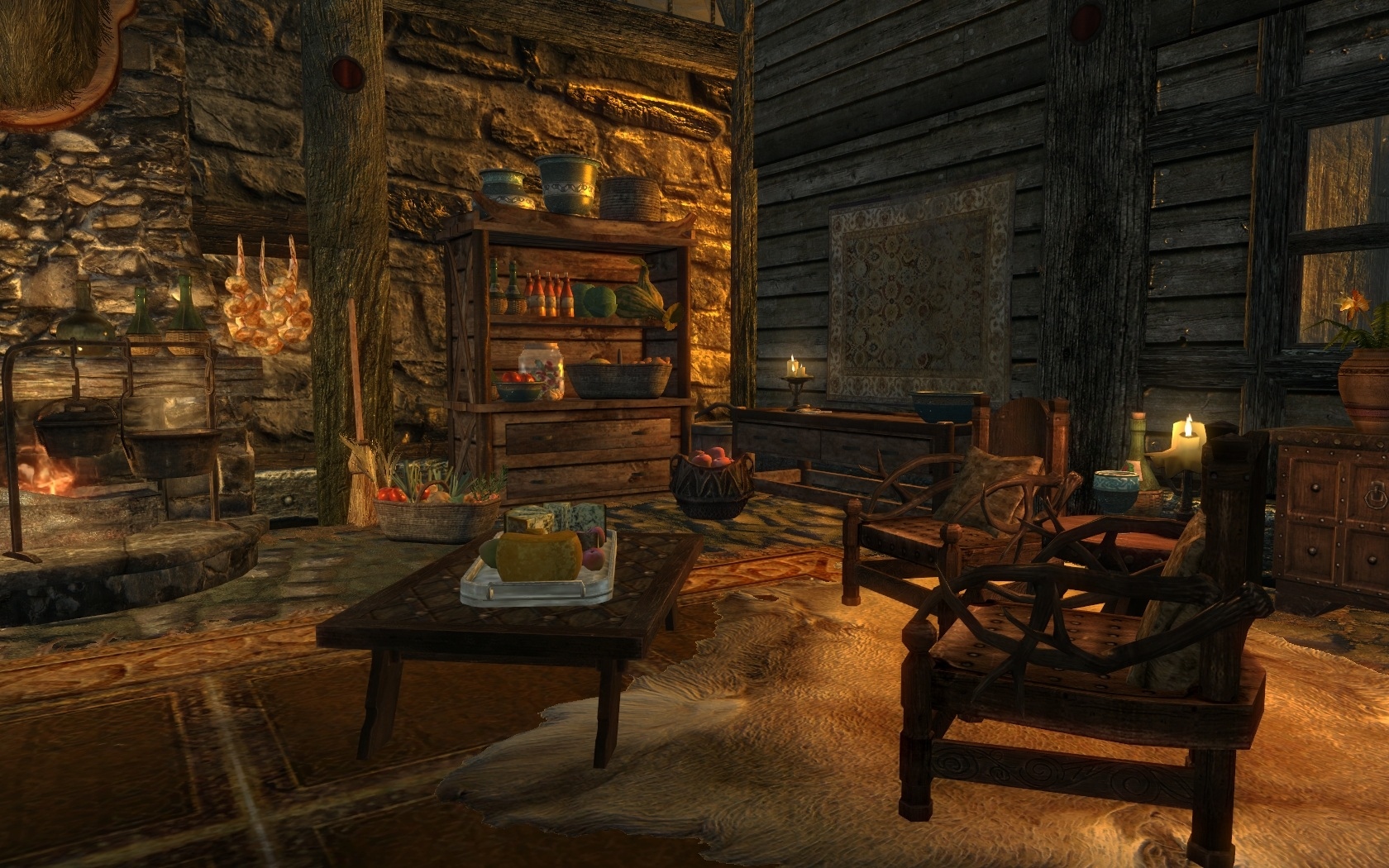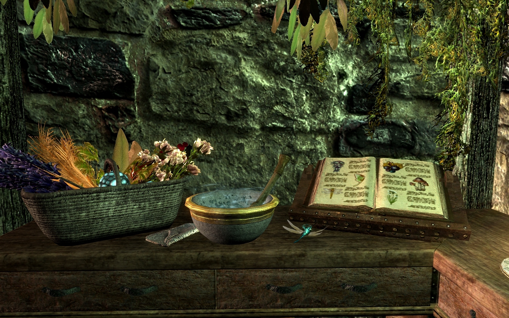 - Полки для книг, сундучки для камней, книгу рецептов и другие нужности