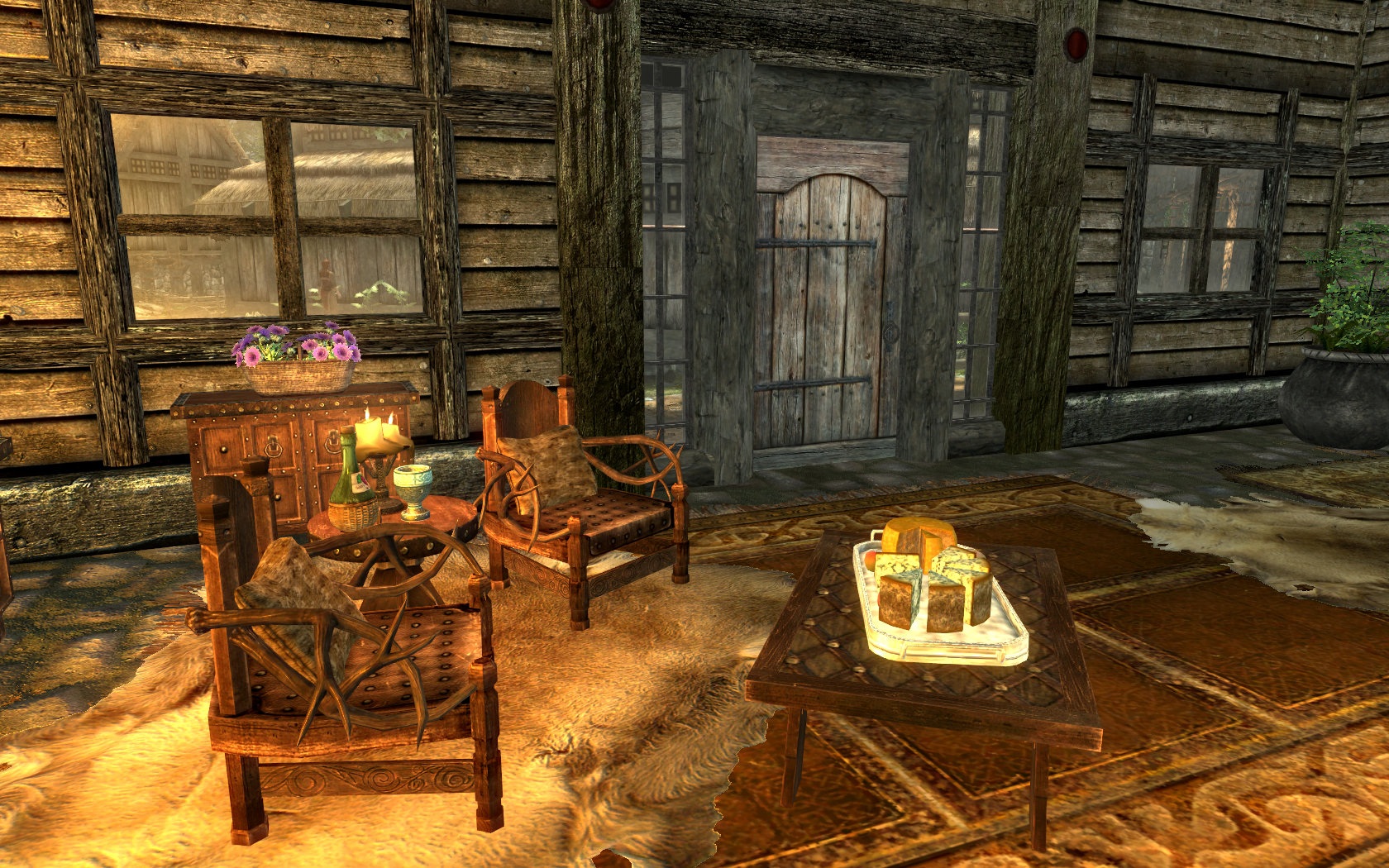Дверь закрыта на засов изнутри. используйте код tcl для первого захода в домик, или просто наведитесь на краешек засова через стекло справа от двери. Поймать его и активировать нетрудно.