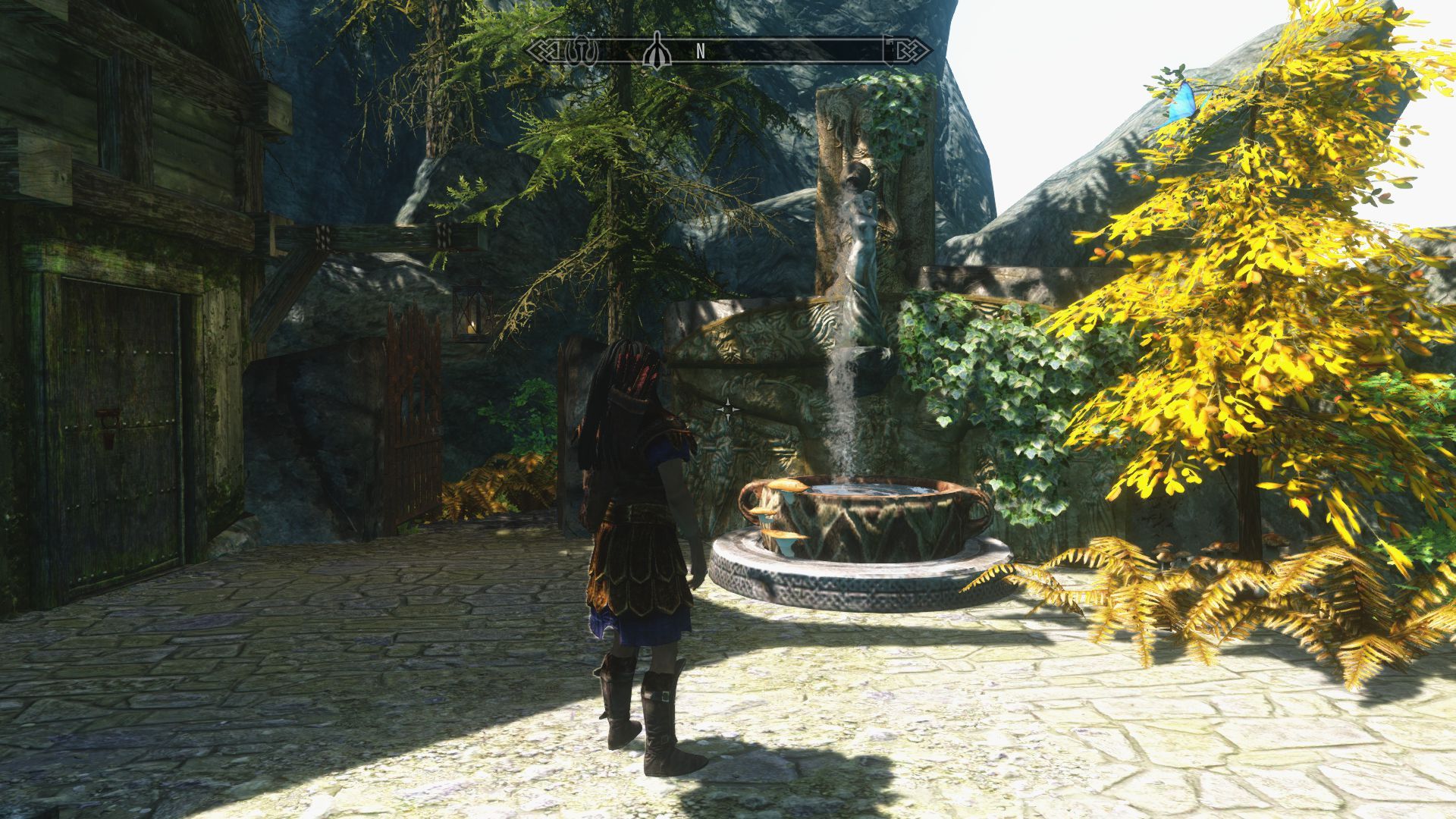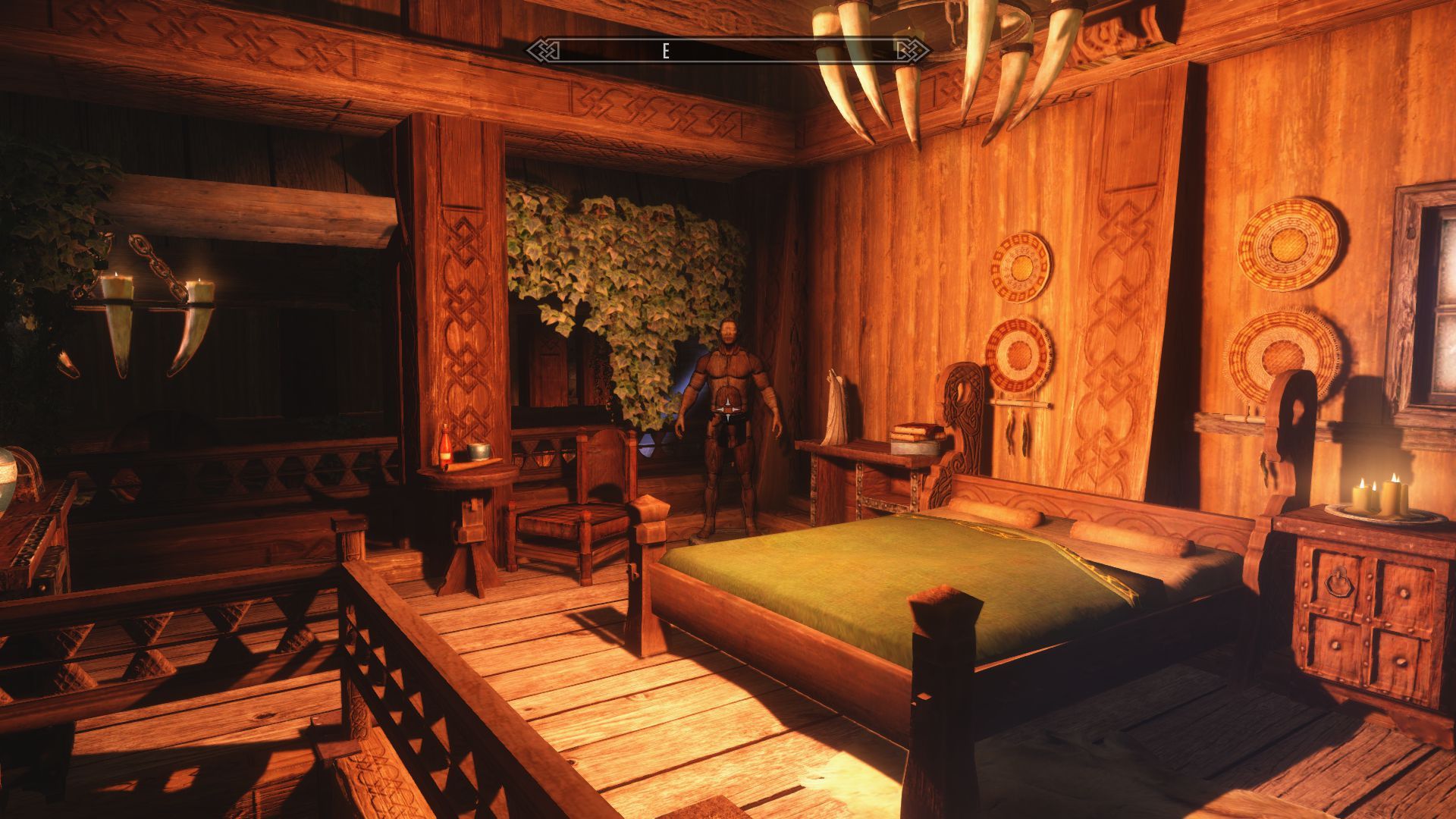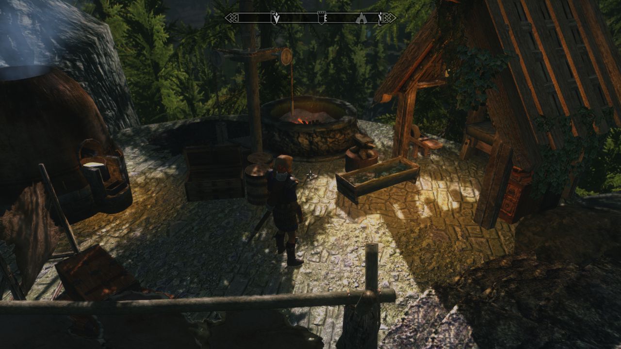 Забыл прикол, на другой стороне реки от дома, при входе на дерево-мост, есть закрывающаяся конюшня, со стойлом для коня, в ней есть даже окошко в которое можно поглядеть, как там ваша лошадка сено жуёт.