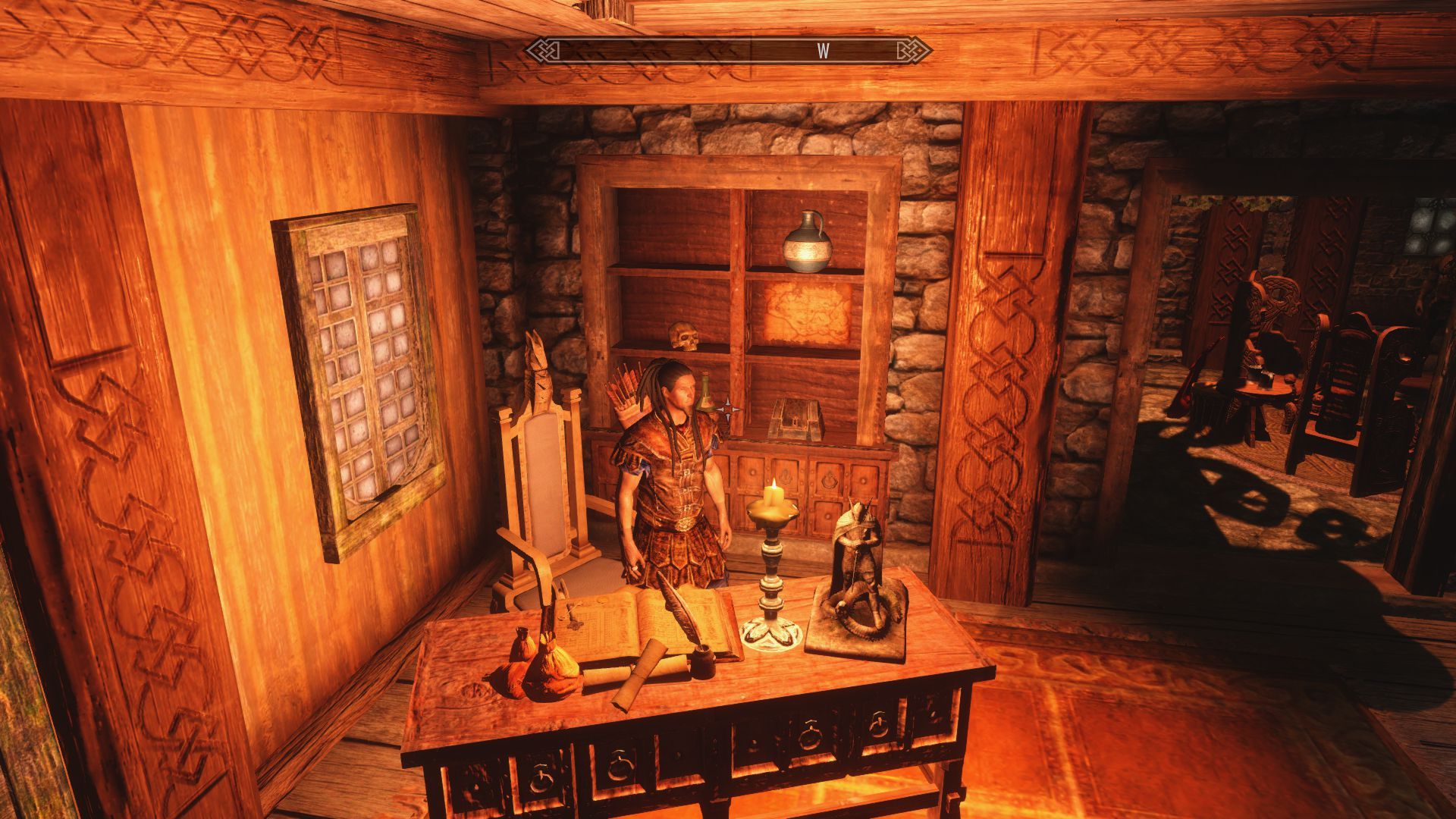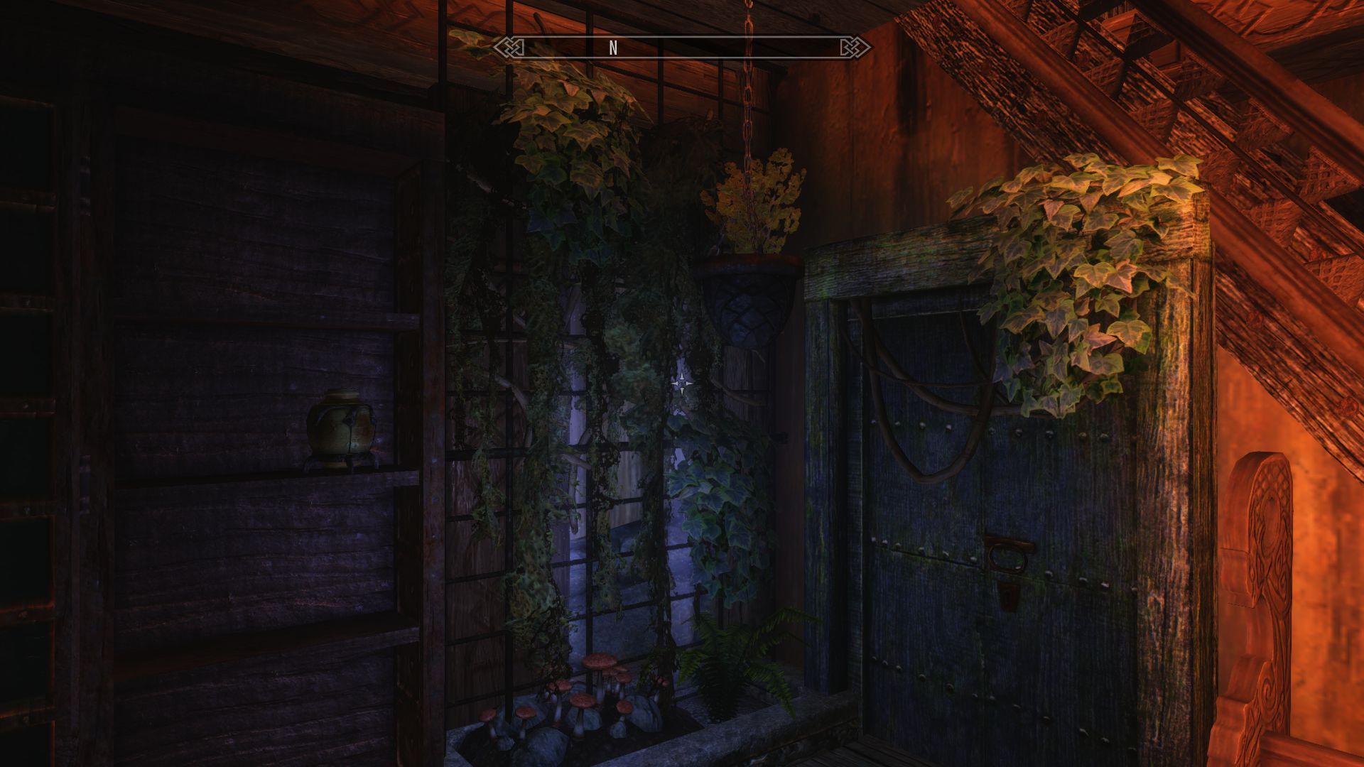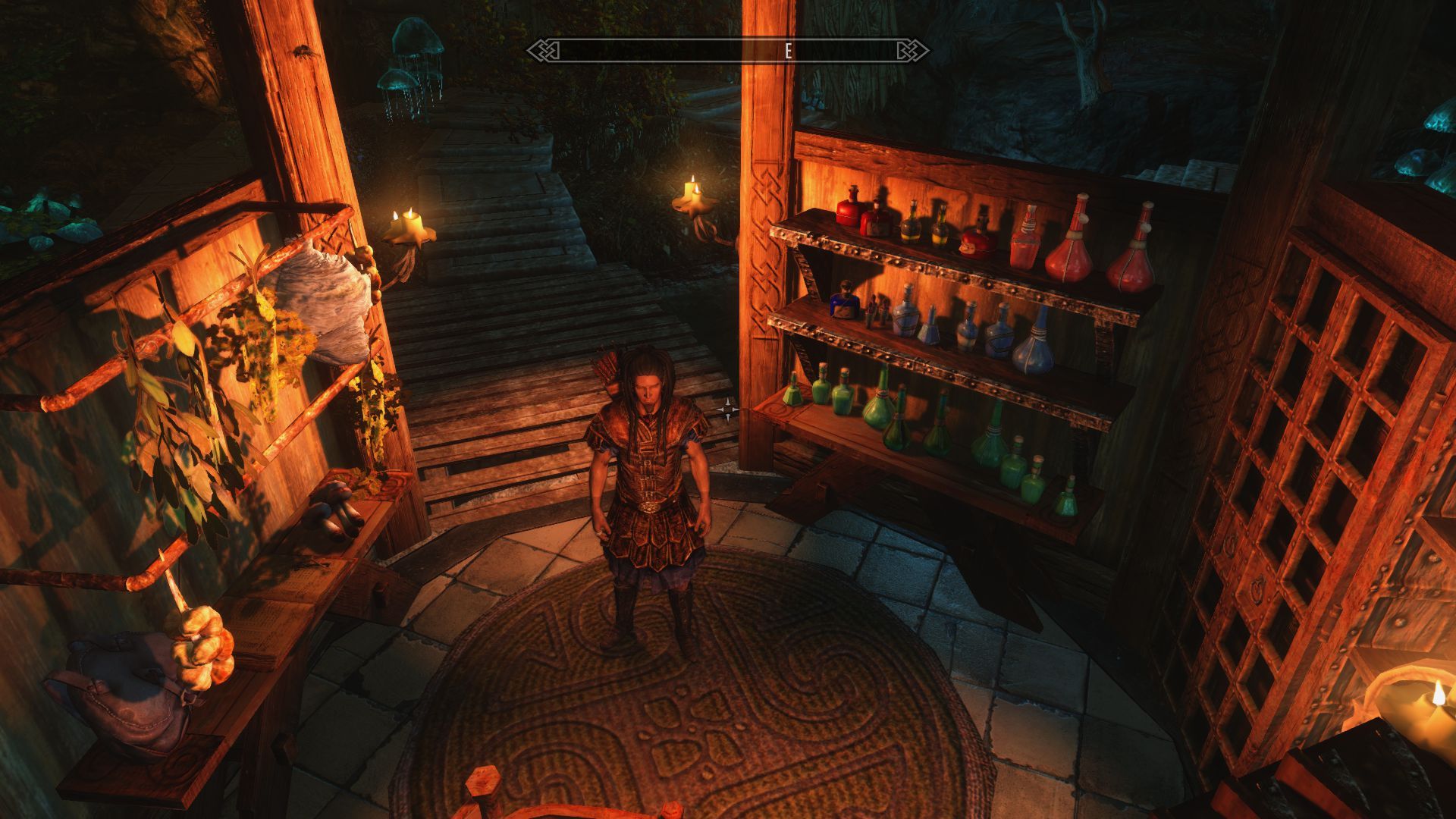 Домик красивый изнутри и снаружи, пространства большие. Книжных шкафов и полок, как в библиотеке. Много алтарей разных. Рабочие пространства разнесены по трём разным локациям, причём и между и ними и по ним надо ещё и побегать изрядно. Алхимичню я вообще едва нашёл, так хитро она упрятана. Кузнечно-лпавильный цех сделан рационально, с большим количеством контейнеров. Чаровальня и химичня - хуже, хотя декоративно красивы.