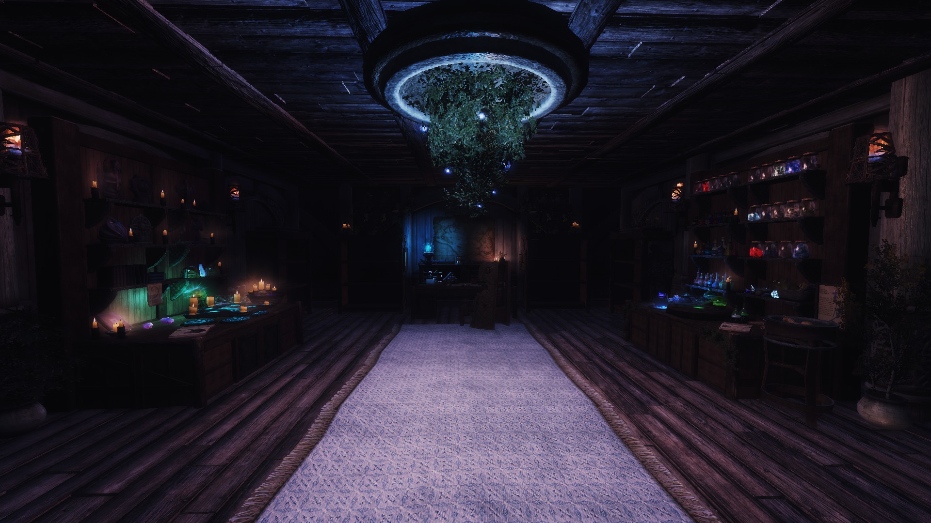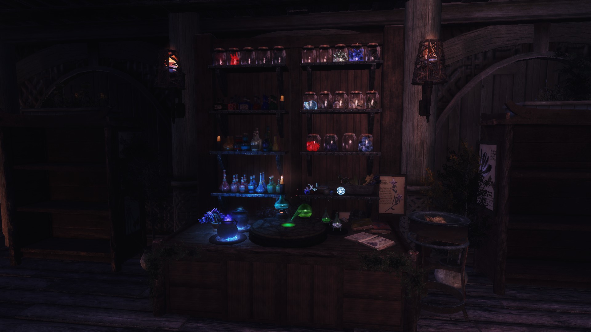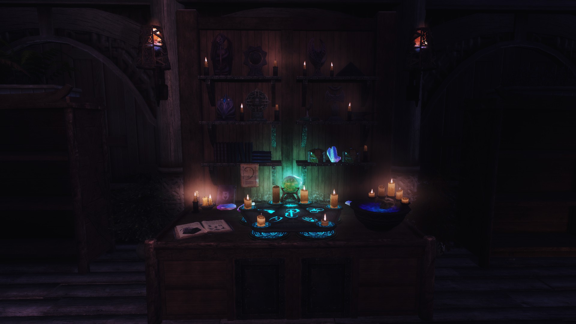 - Красивая алхимическая лаборатория и стол зачарований со всеми святилищами и витриной для Звезды Азуры/Черной Звезды.