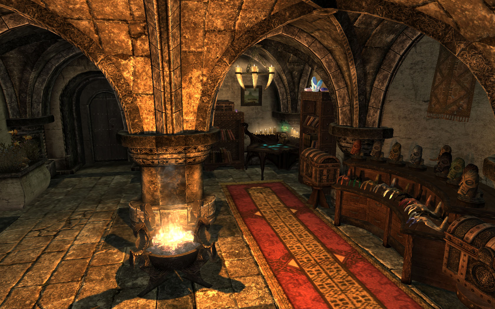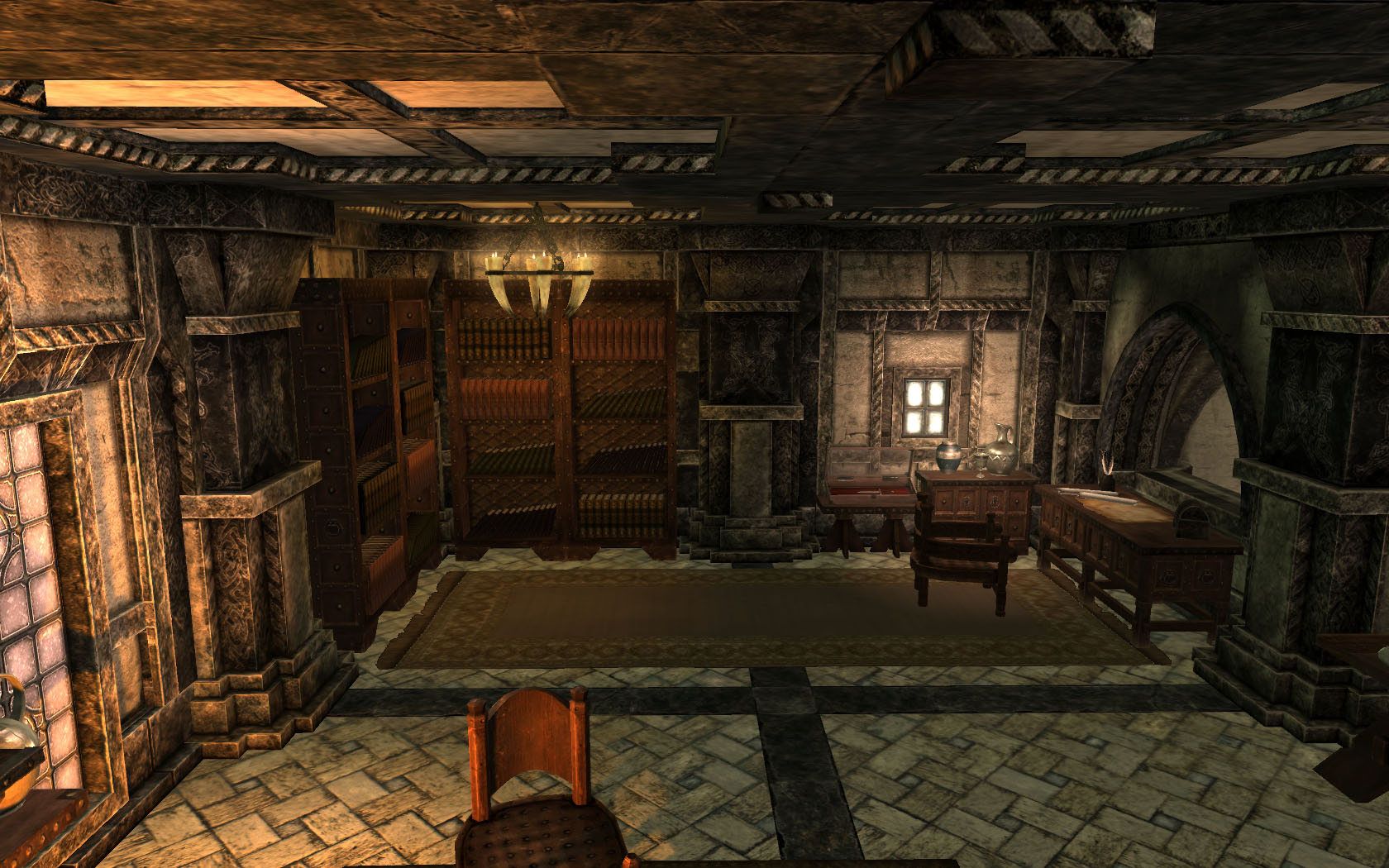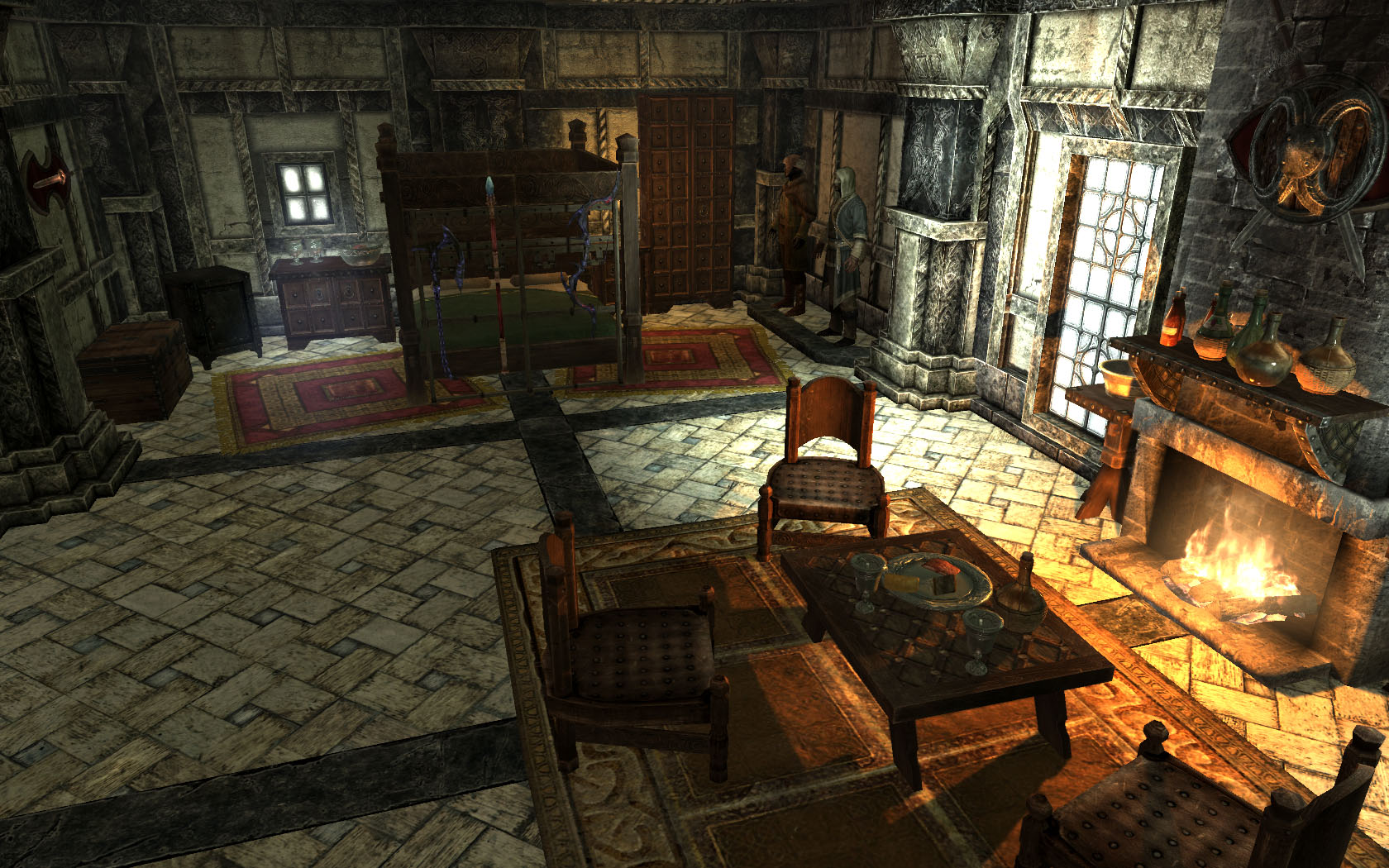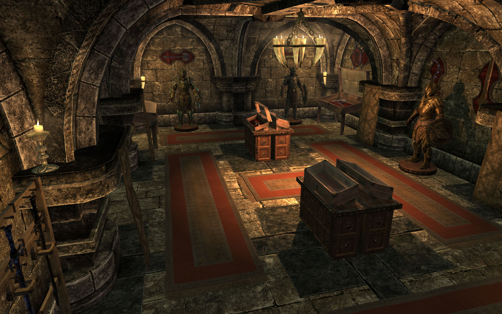 - увеличивает и улучшает спальню игрока, добавляя 4 большие книжные полки, 2 манекена, оружейные стойки, новую мебель и витрину для кинжала.