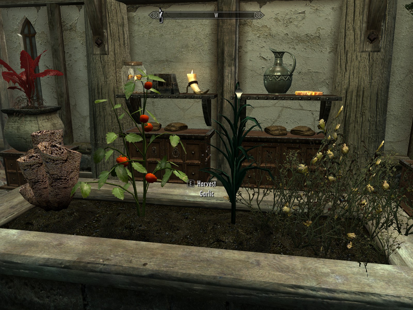 Если у вас есть дополнение Dragonborn, то вы сможете посадить корень трамы, стручок пепельной травы, вредозобник, пепельный батат и пепельную ползучую лозу.