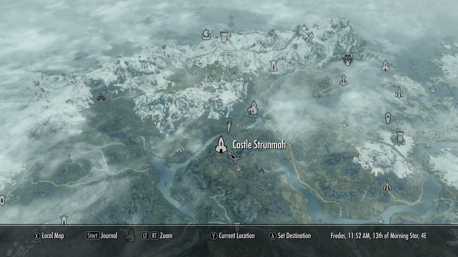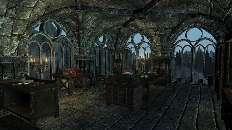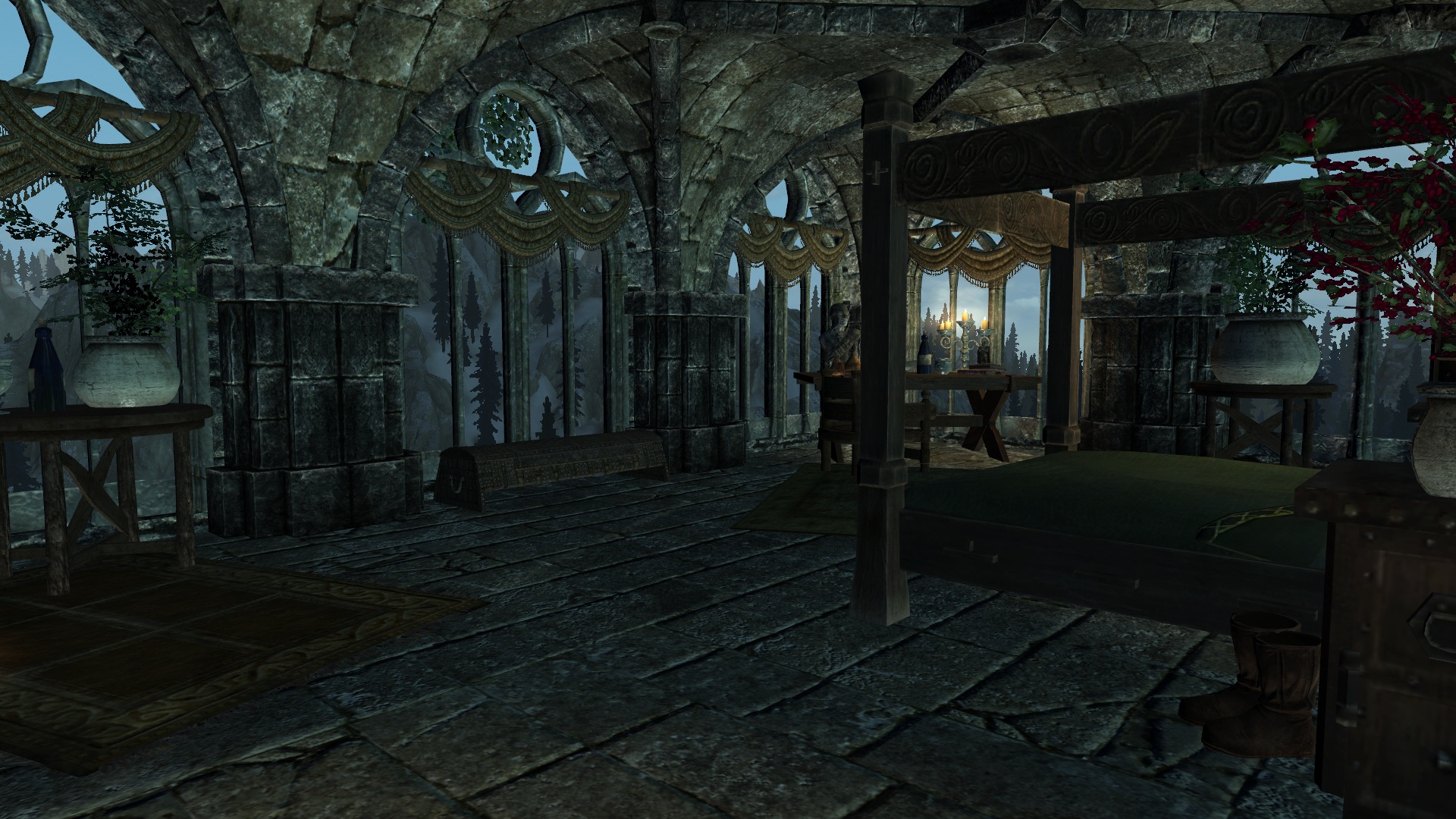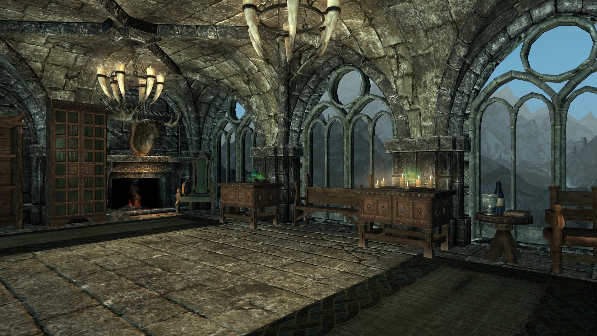 Мод добавляет большой замок на вершине гор к югу от Драконьего Моста. В замке есть главный зал, кухня, спальня для компаньонов и игрока. Конечно же вы найдете в замке все необходимое для крафтинга.