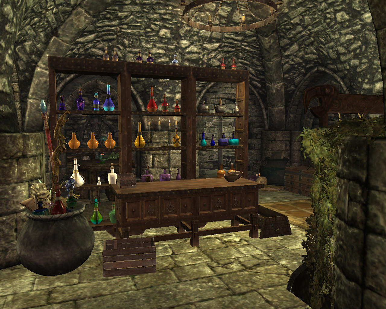 - Алхимическая лаборатория, пентаграмма душ, очаг, плавильня, кузница, точильный камень, верстак, дубильный станок;