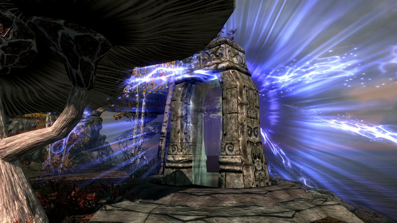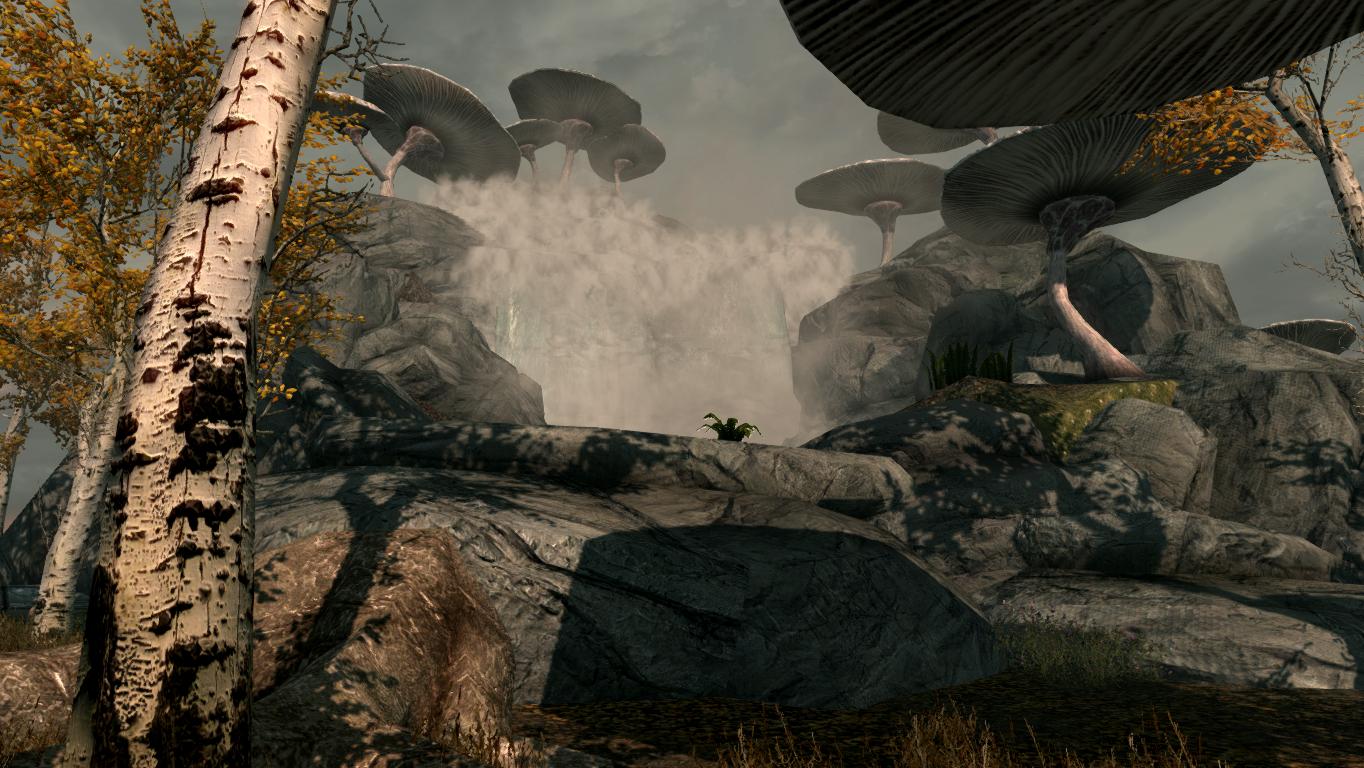 На улице вы найдете очень красивый водопад и необычные грибы, также на улице есть кузница и портал на сам остров.