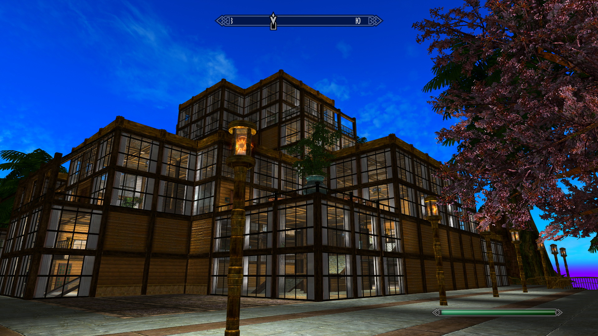 Плагин добавляет громадный дом-город для игрока. Находится в отдельном измерении. Вход недалеко от башни, где мы сражаемся с Мирмулниром. Рассчитано на тех, кто играет со множеством компаньонов (чтобы заселить их туда и устроить там базу), собирает коллекцию брони и оружия, любит двемерские технологии и научный прогресс, всерьез интересуется магией и лояльно относится к вампирам. Имеется открытая локация (дом и окружающее пространство без предзагрузки и с видом из окон).
