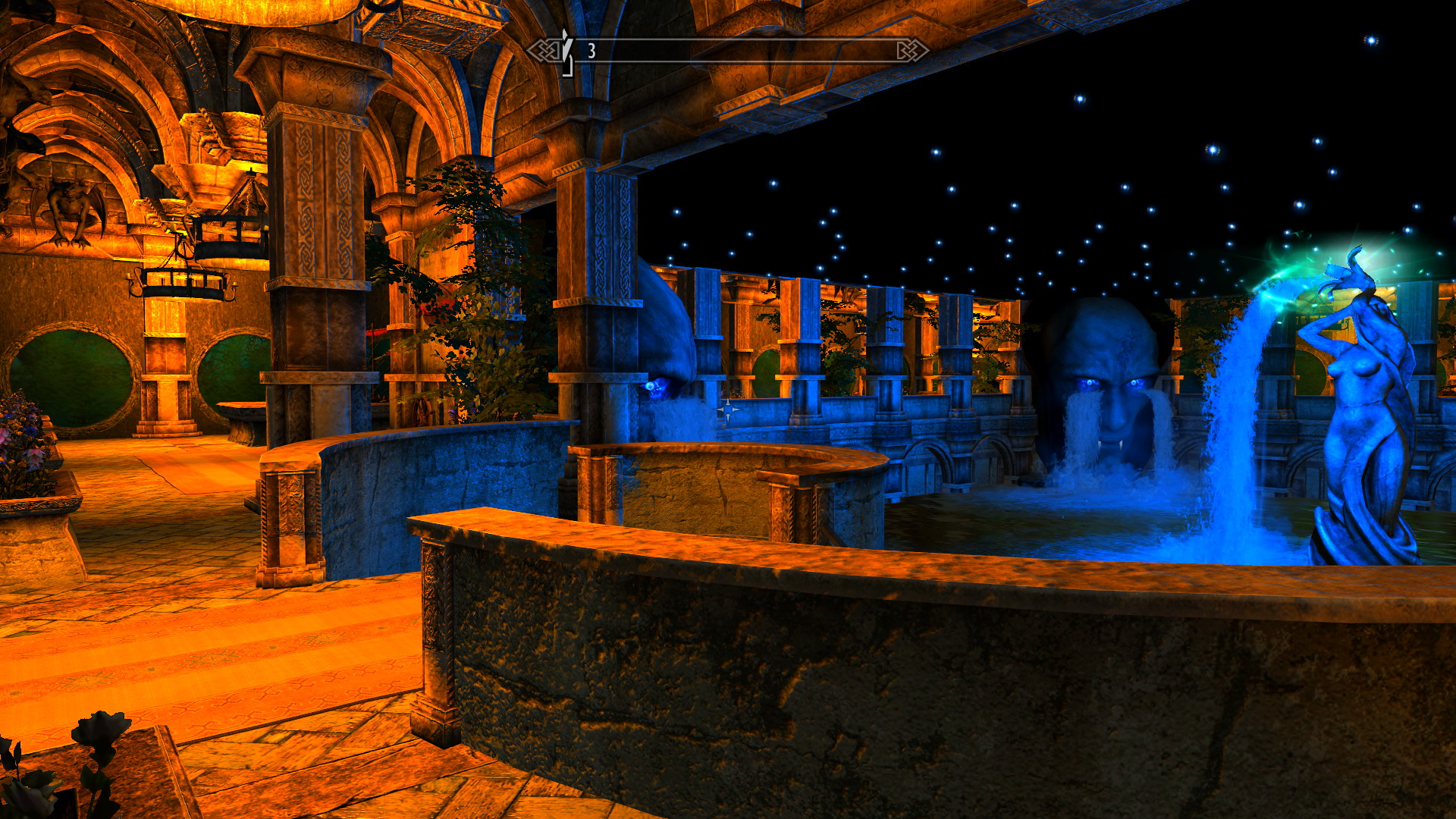 -Самая большая локация "открытая" (в ней дом, из которого можно выйти в сад без предзагрузки, также весь окружающий пейзаж прекрасно видно из окон, но локация находится не в Скайриме, а в отдельном "измерении")