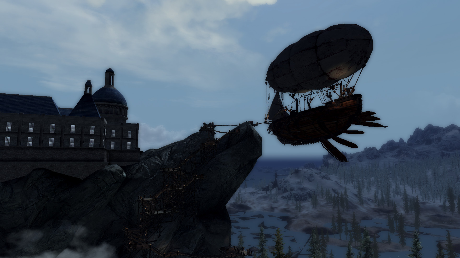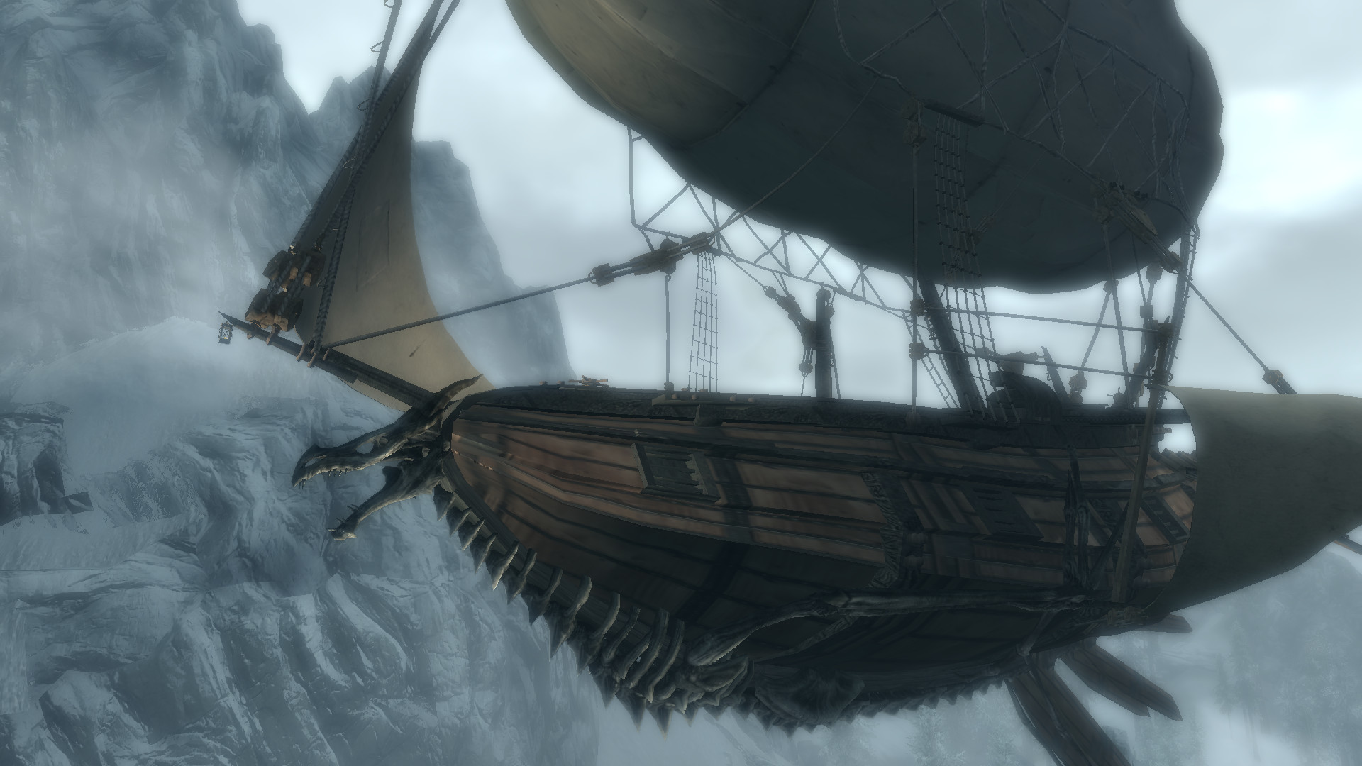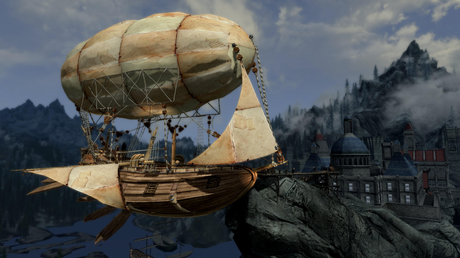 Мод добавляет летающий корабль, управляемый игроком в реальном времени. Судно под названием "Див Авеза" припарковано у воздушной станции на скале, где стоит Солитьюд. Вход на станцию – ВНЕ города по большой лестнице. Чтобы начать управлять кораблем, достаточно активировать штурвал.