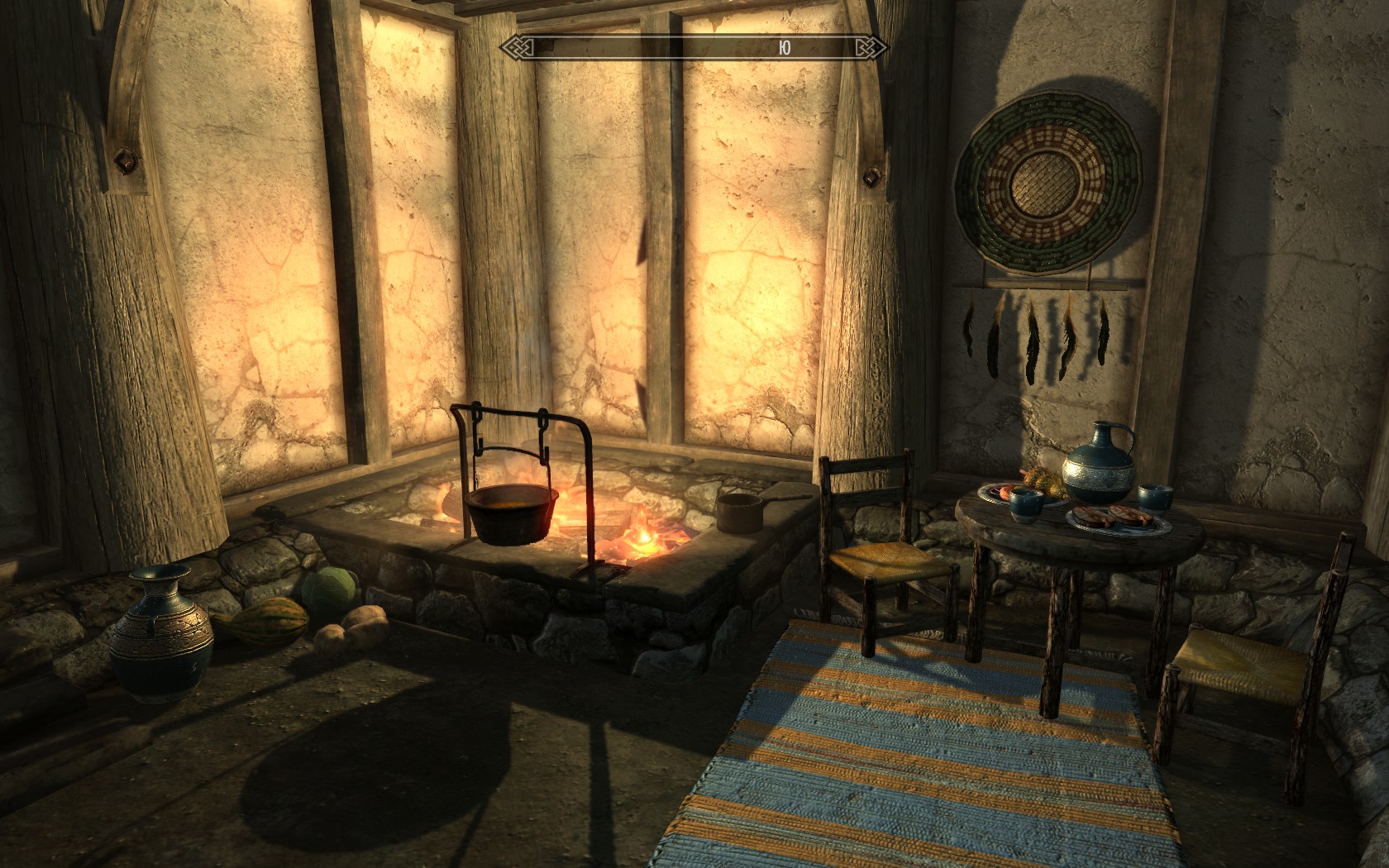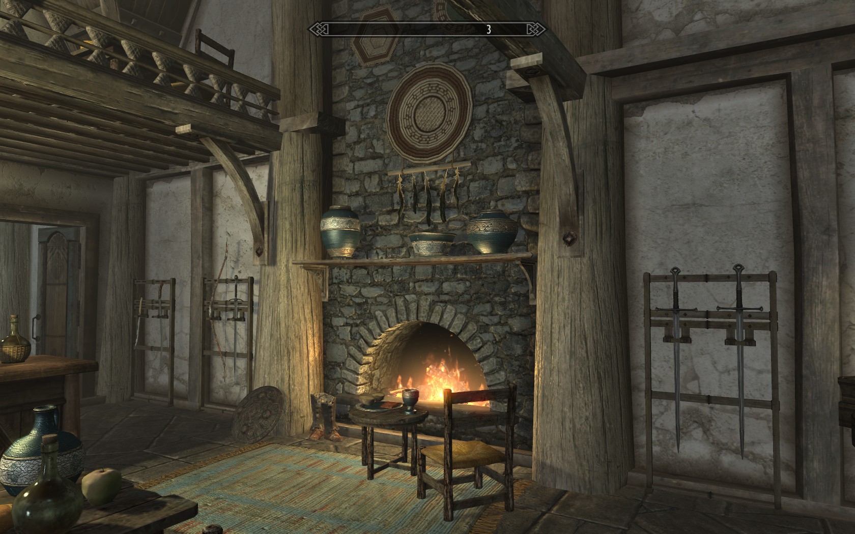 Кроме основных дел, Довакин может наколоть дров для камина, потренироваться на мишенях и манекенах, посидеть у костра возле дома, посмотреть как гиганты пасут мамонтов, сходить к водопаду, половить рыбу в реке, а также, если стало скучно, ограбить бандитов севернее или великанов на холме.