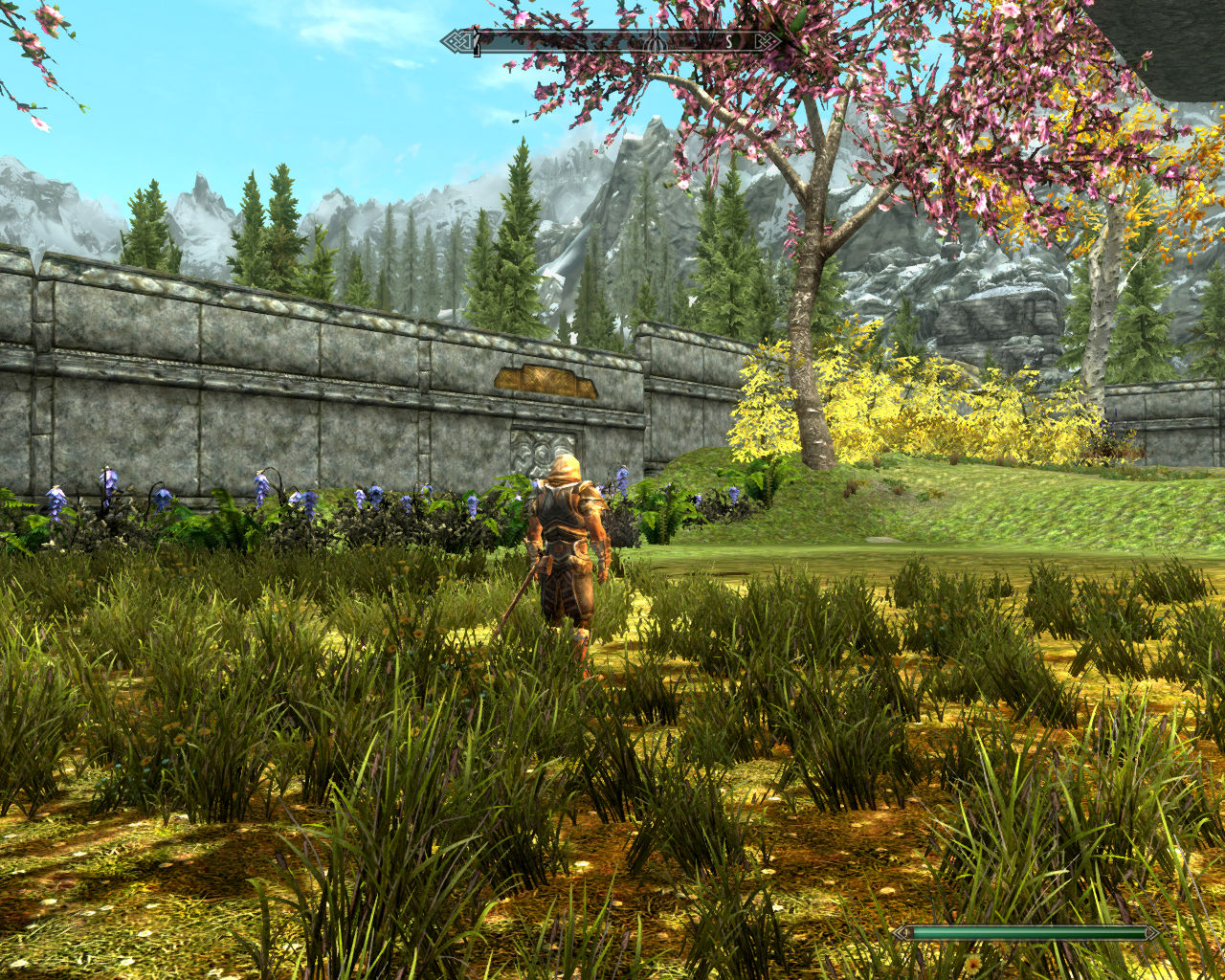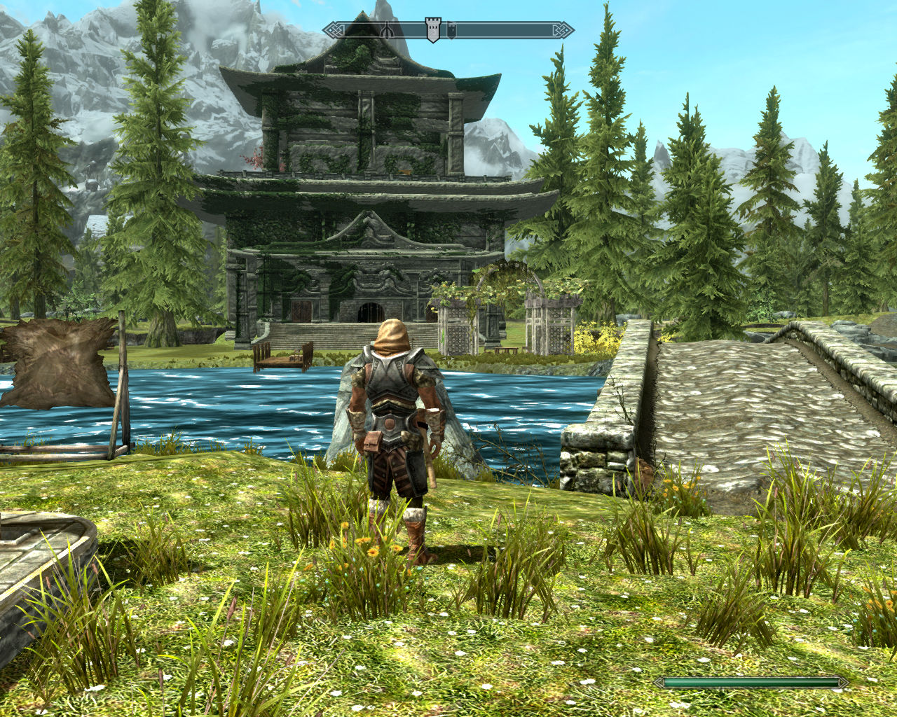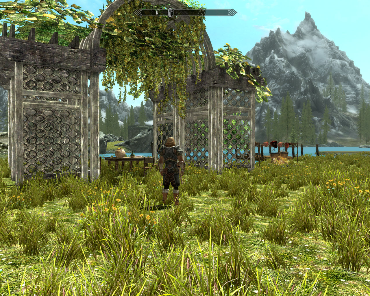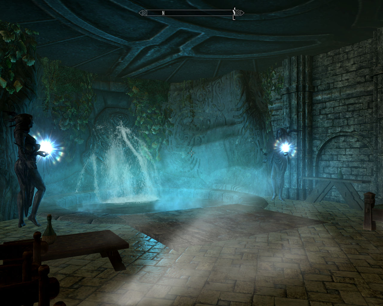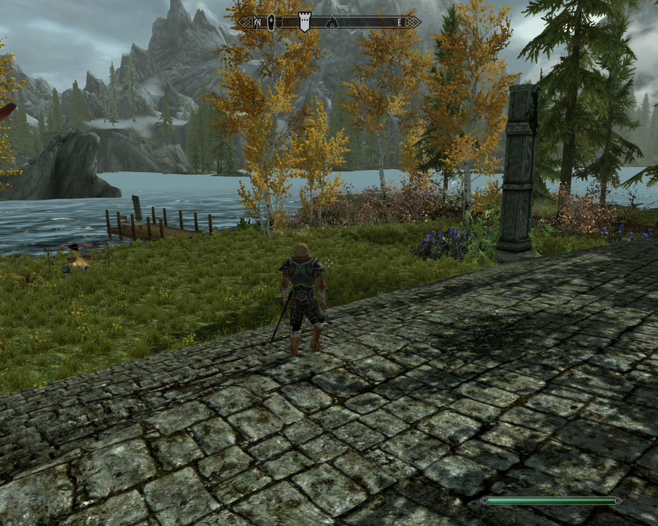 Никаких enb на скринах не использовалось. Для достижения эффекта как на скринах используйте мод SkyrimURWL (не нагружает систему).