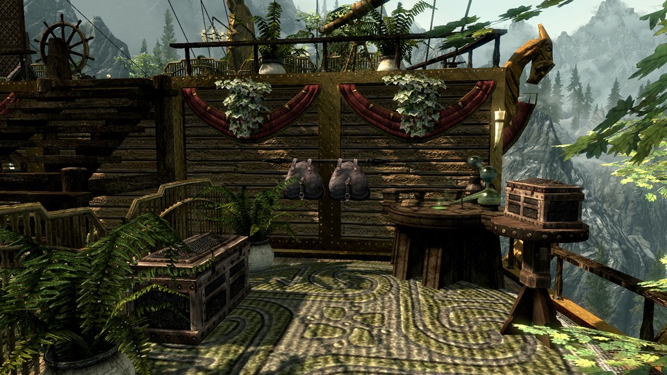 подняться на корабль и спуститься с него. На корабле вы отыщите несколько манекенов, все необходимое для занятий ремеслом, оружейные стойки, множество сундуков и ящиков.