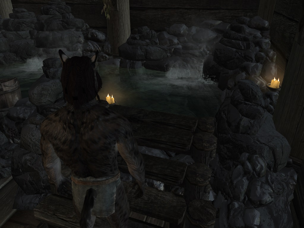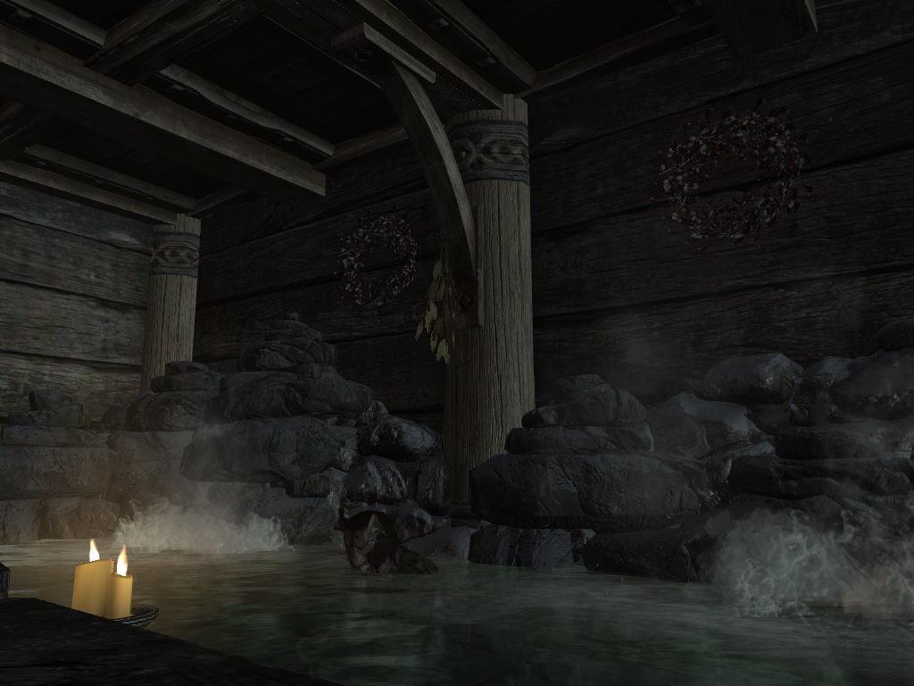 - изредка после погружения в бассейн рокочущий звук источника преследует героя даже после выхода из бани. Баг связан с особенностями звукового движка игры и потому не может быть ликвидирован полностью. (Аналогичные баги наблюдаются и в ванильной игре - например, со звуком работающего точильного колеса). Лечение: быстрое путешествие или перезагрузка.