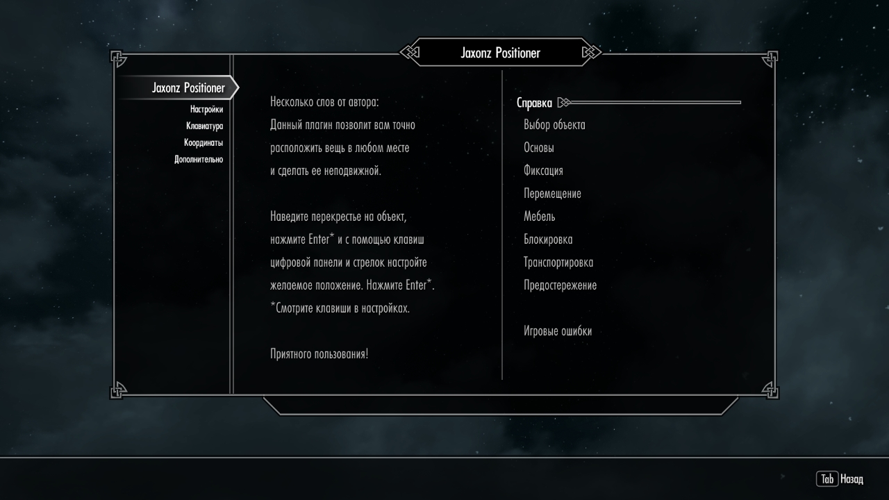 С помощью данного плагина вы сможете передвигать множество различных предметов и устанавливать их там, где пожелаете. Точность размещения объекта и возможность его фиксации в пространстве - главные, но далеко не единственные возможности этого мода.