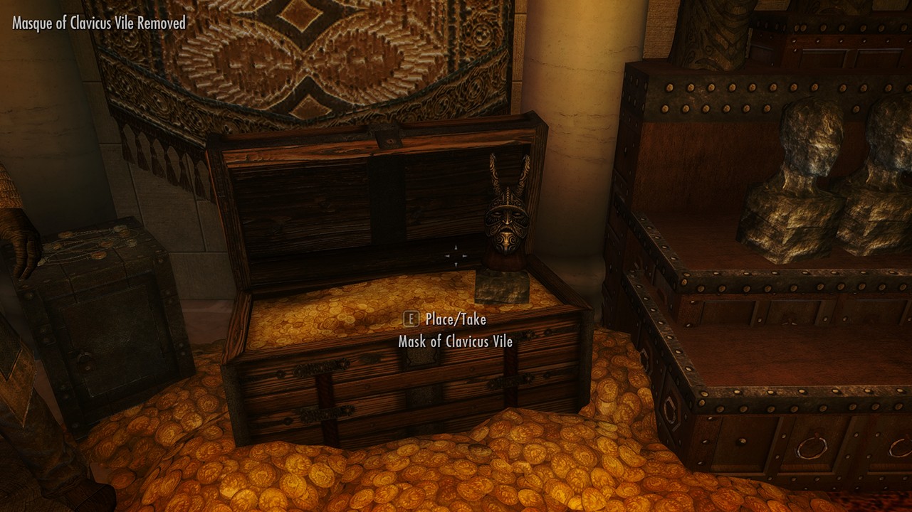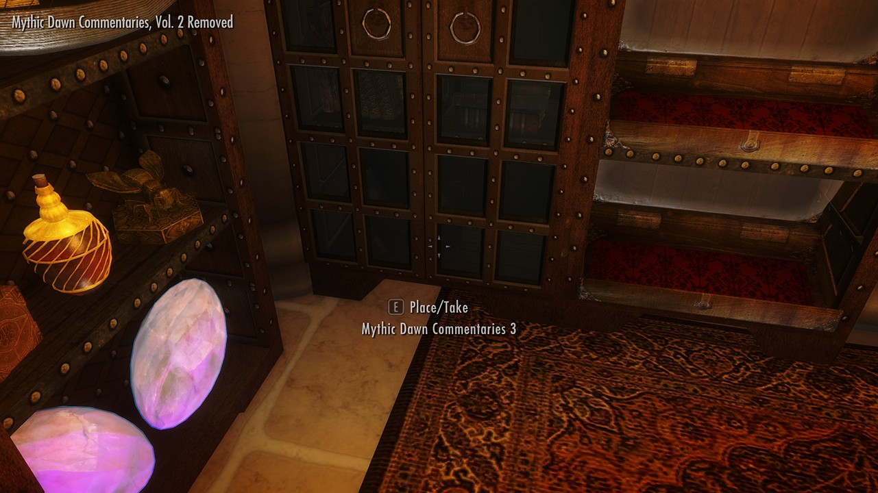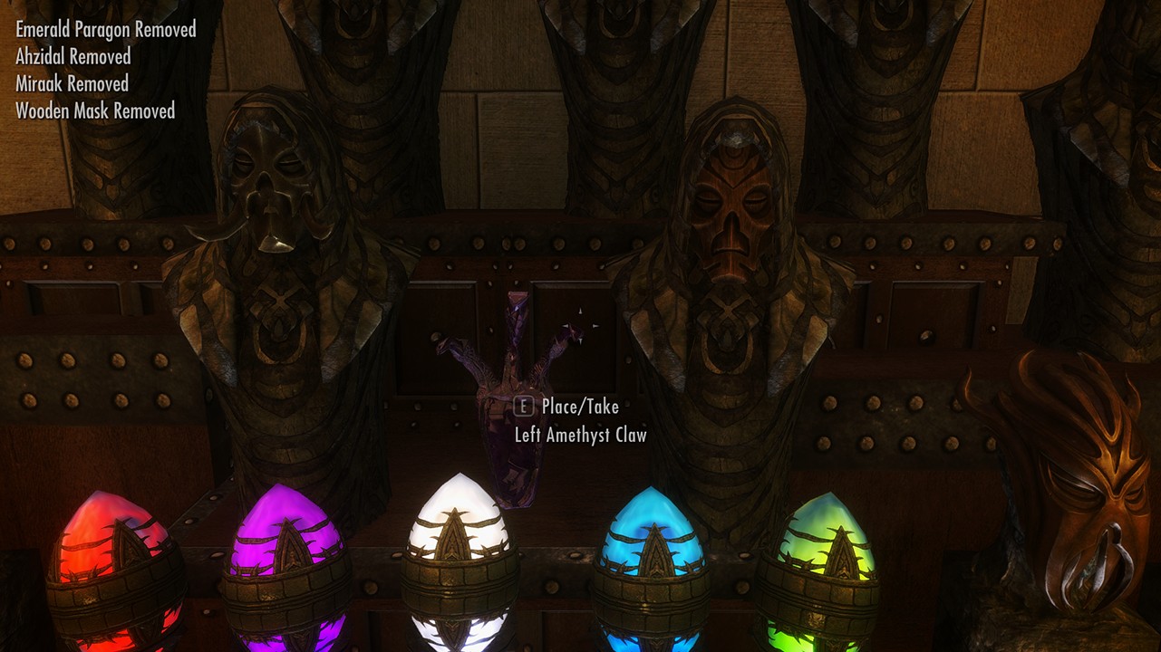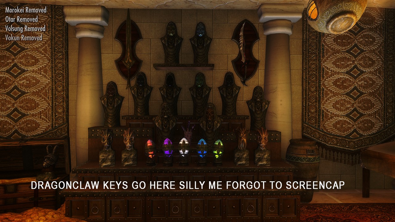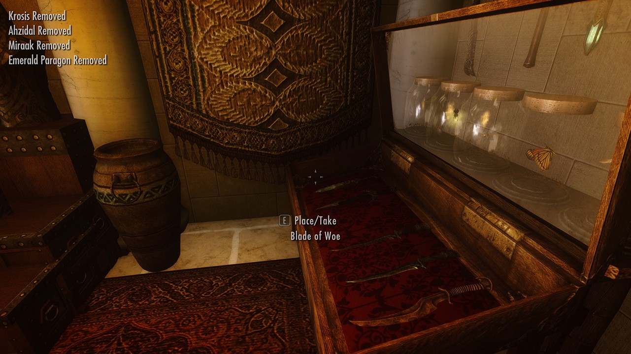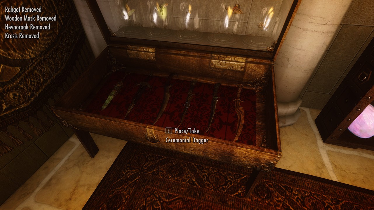В секретной комнате полно витрин для уникальных книг, когтей, масок, сокровищ Гильдии воров и т.д. При желании воспользуйтесь свободным пространством, чтобы разместить какие-либо свои сокровища, в этом вам поможет
