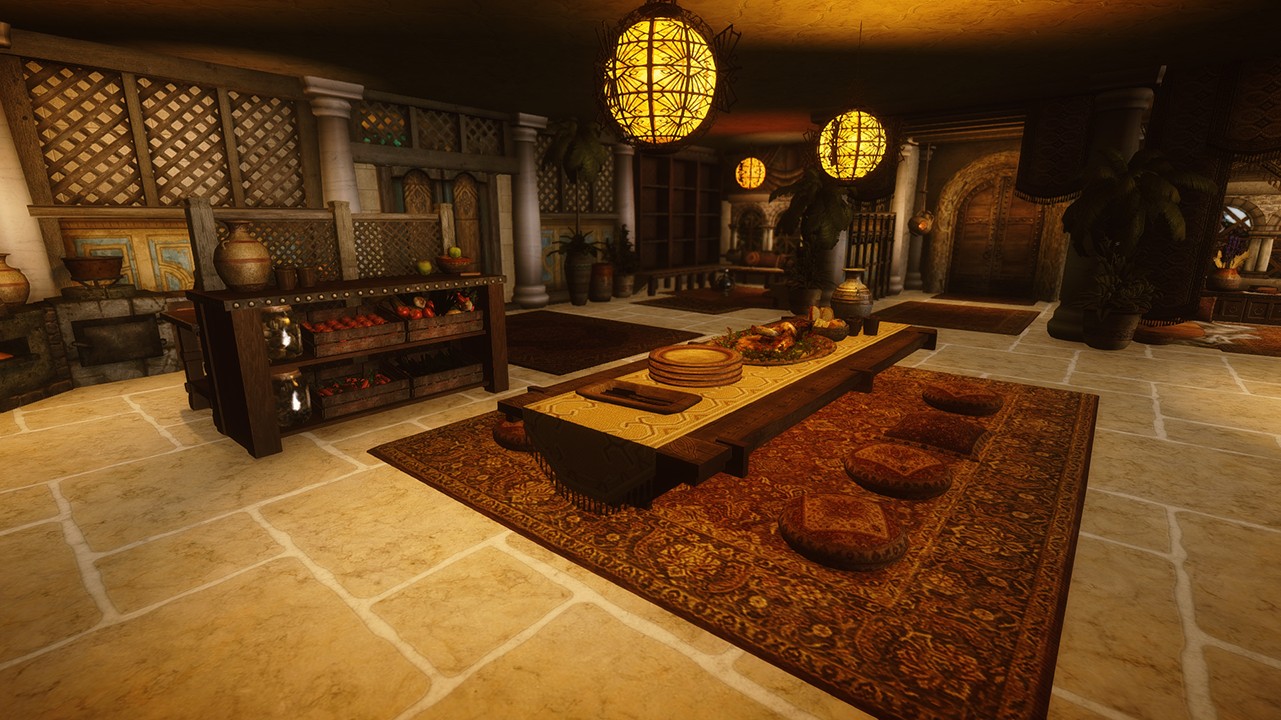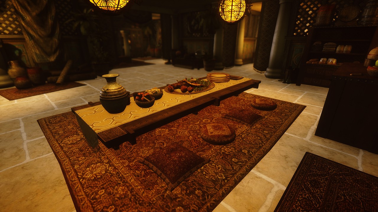 - Подушки перед обеденным столом предназначены для NPC, если хотите, чтобы и игрок сидел со скрещенными ногами, то вам понадобится соответствующий мод.