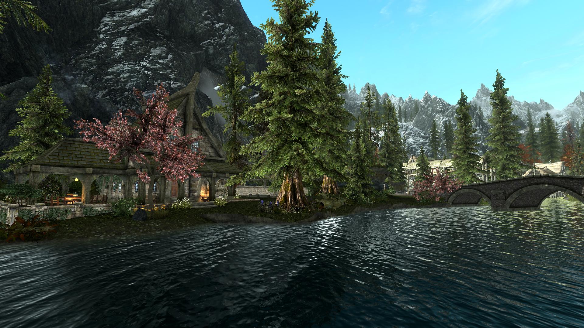 Красочная, удобная Усадьба У Белой Реки около Ривервуда, напротив дороги в Вайтран. В усадьбе есть всё что нужно для кузнецов, для ремесла, а также алхимическая лаборатория, и пентаграмма душ. Несколько манекенов, витрин и стендов для оружия. К тому же есть возможность сортировки и складирования ингредиентов и камней душ нажатием всего одной кнопки, а также возврат их в инвентарь. Есть комната для детей (всего 6 кроватей), и компаньонов (тоже 6 кроватей).