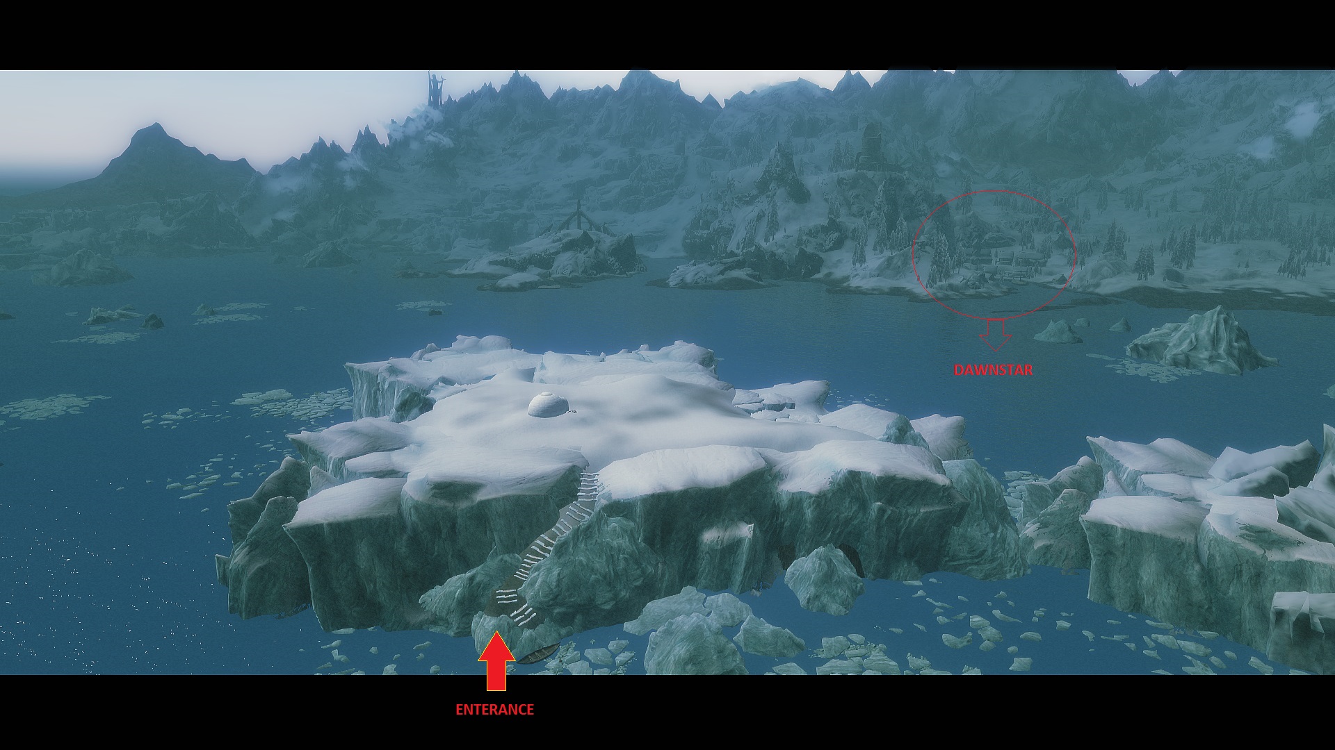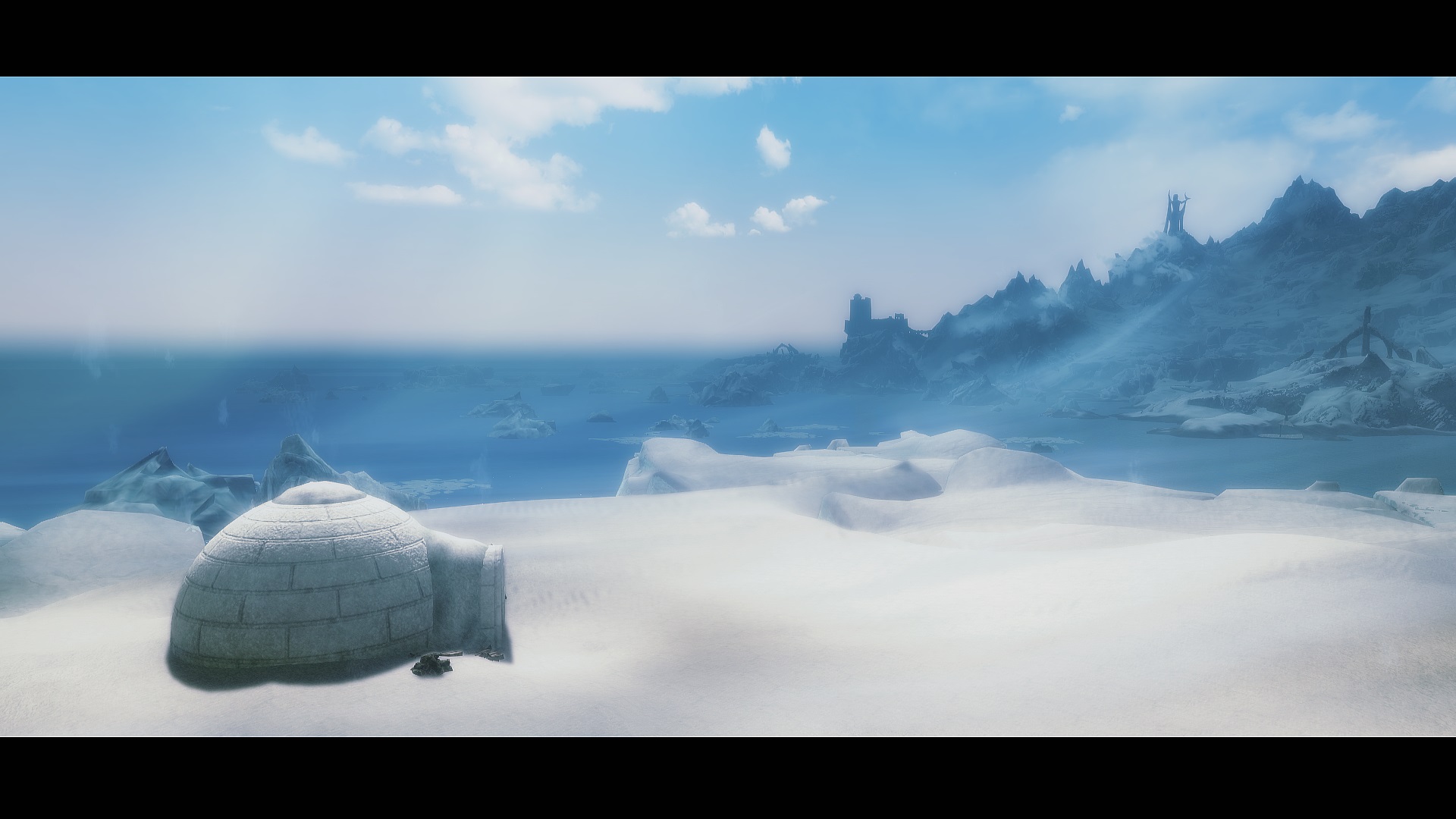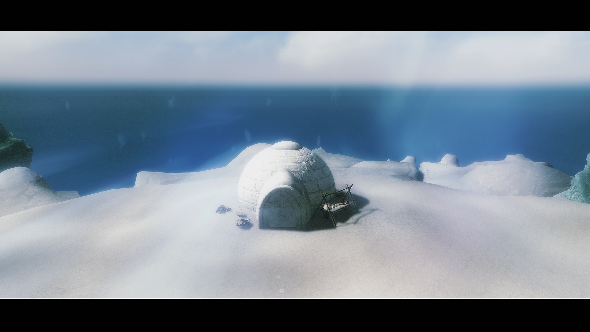 Климат Скайрима весьма холодный, в северной части провинции постоянно лежит снег, а лед никогда не тает. Учитывая это, почему бы не обзавестись маленьким иглу там?