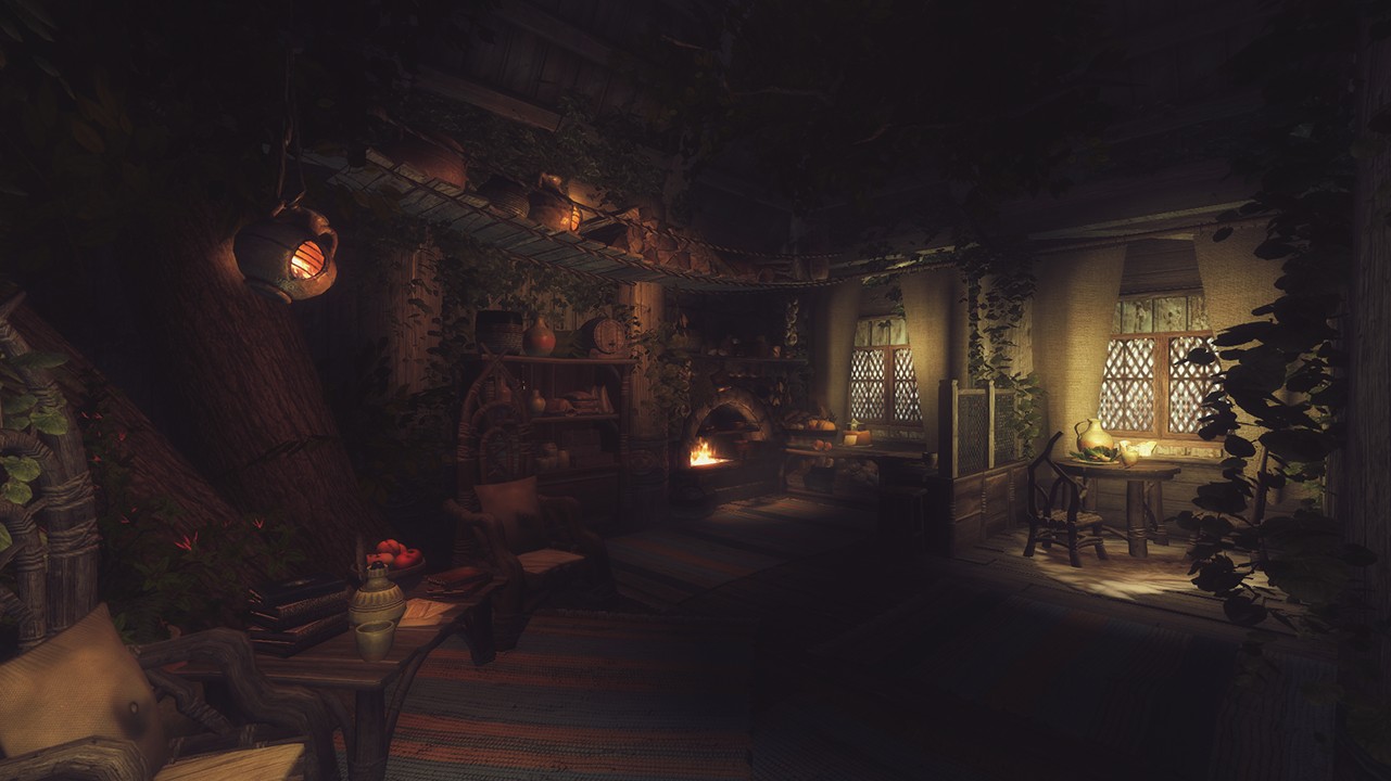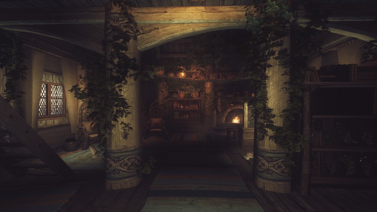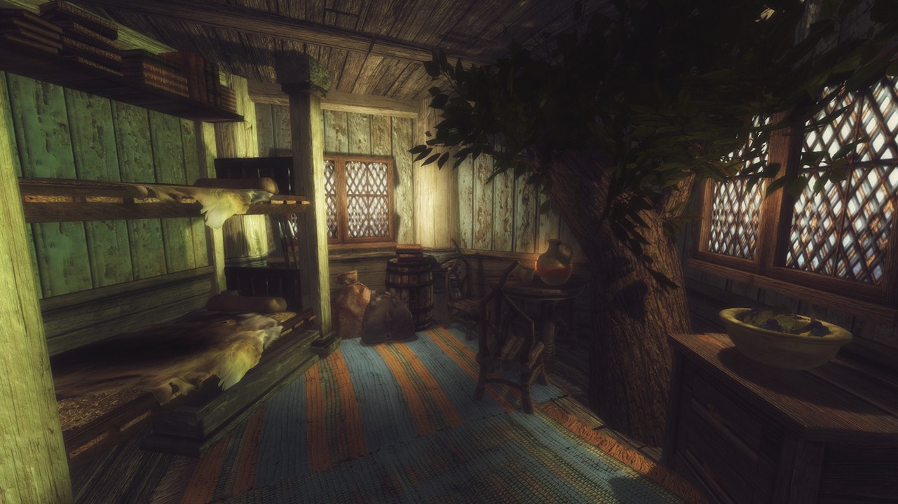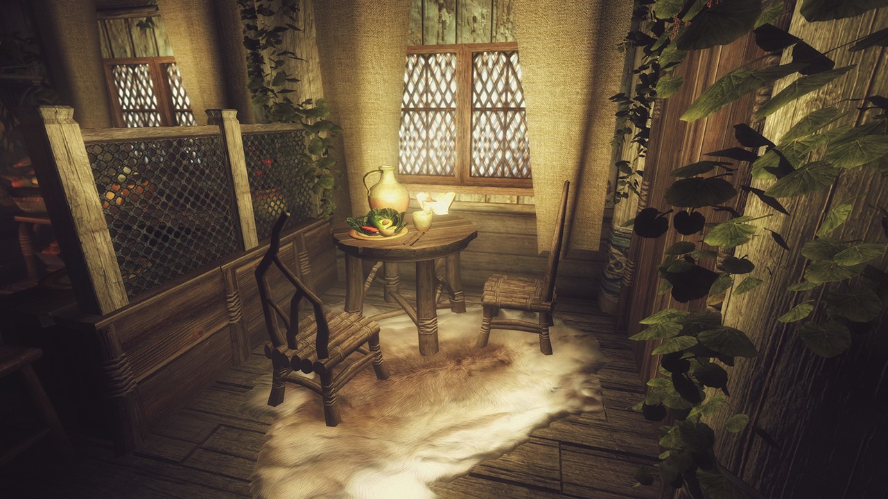 - Совместимо с Frostfall и прочими модами на выживанием. В доме множество теплых мест и воды.