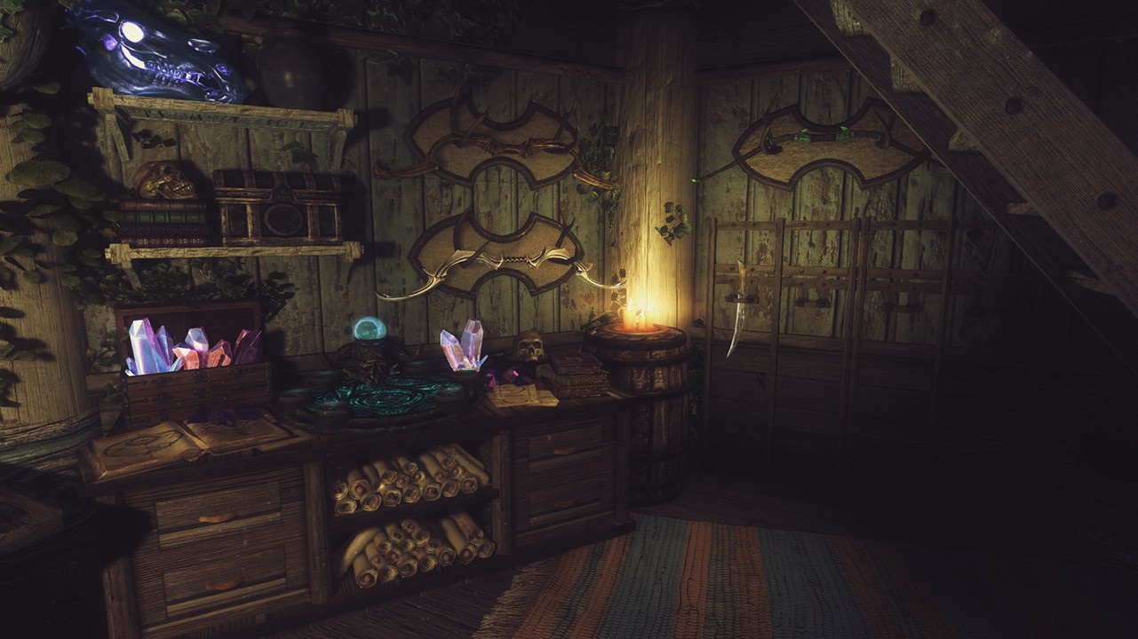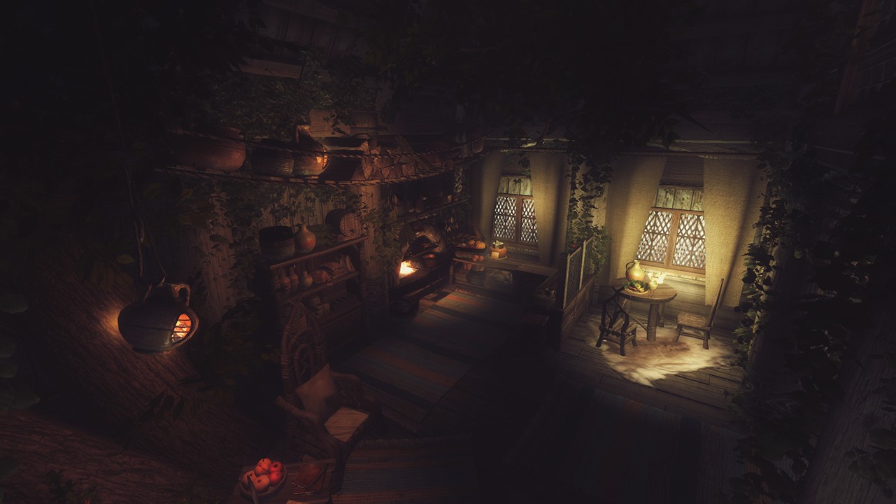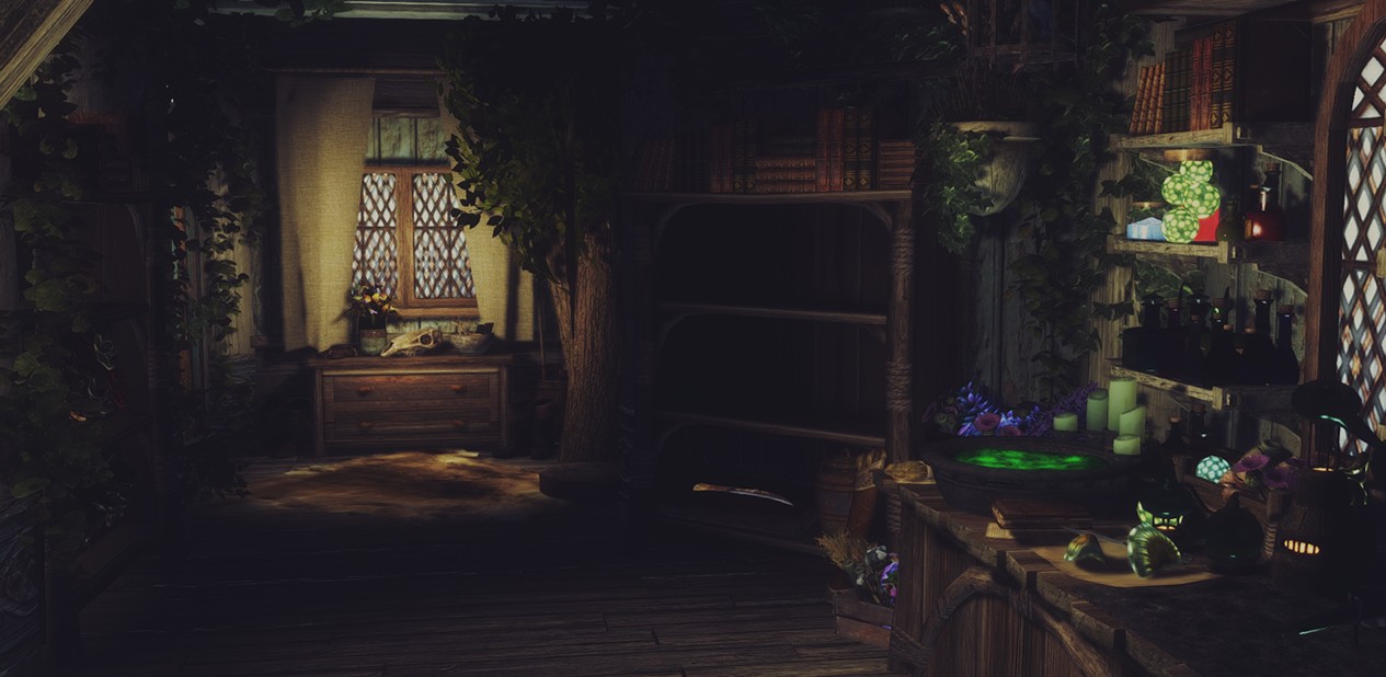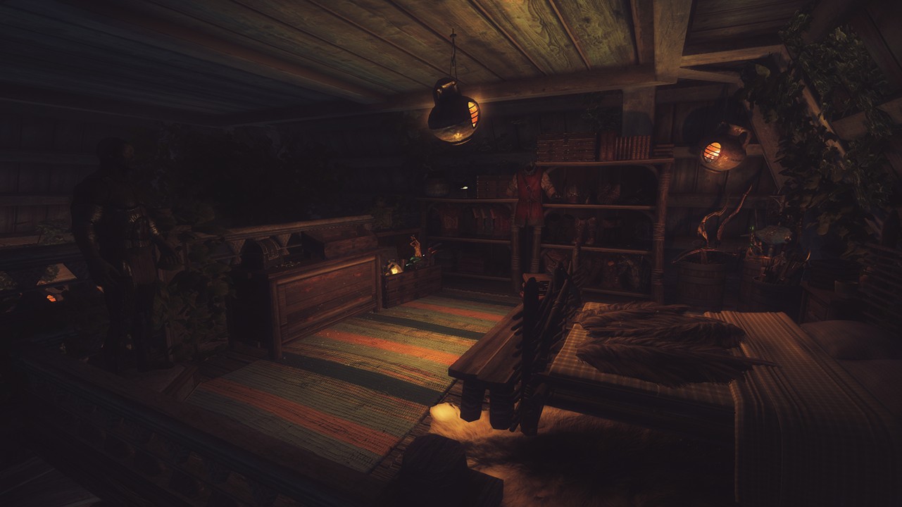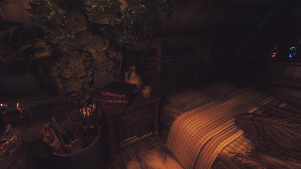 - Совместимо с Frostfall и прочими модами на выживанием. В доме множество теплых мест и воды.
