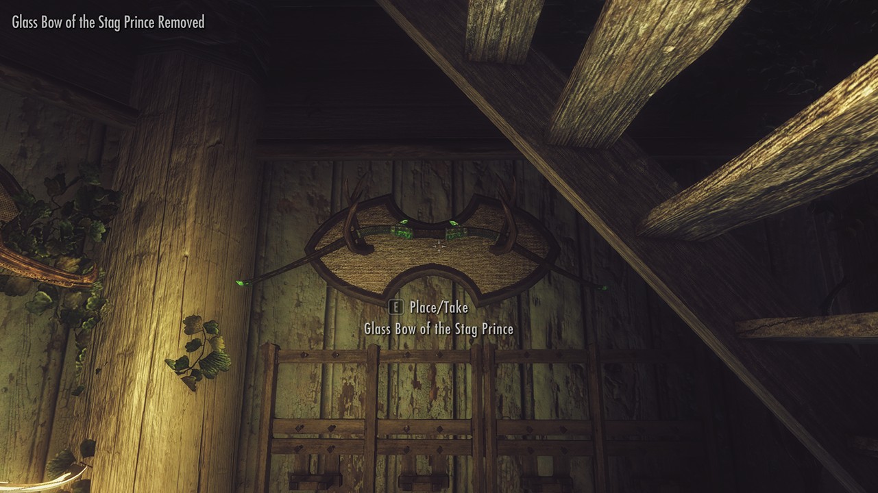- Несовместимо с модами, изменяющими стеклянный лук Короля-Оленя или область, где находится дом.