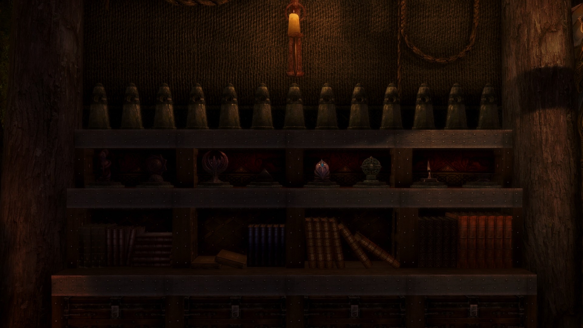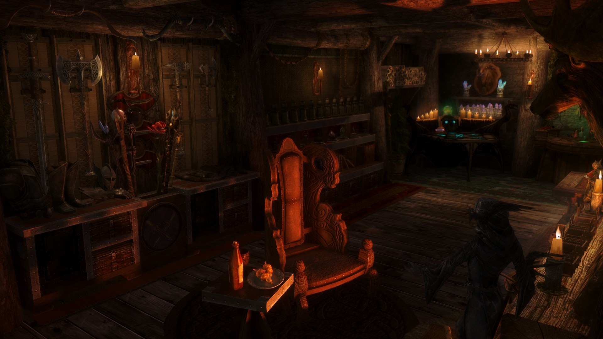 В домике вы найдете святилища, хранилища, инструменты для занятия ремеслом, карту гражданской войны, камни судьбы и различные декоративные предметы. Конечно же в домике есть сундуки и шкафы. В домике доступно быстрое путешествие.