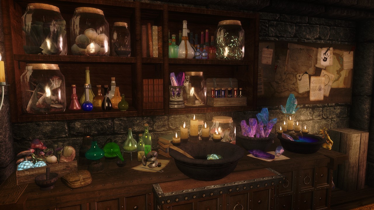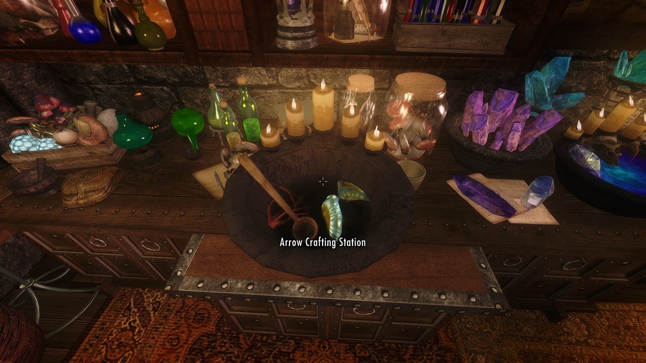 Сам по себе, дом имеет: алхимический стол, пентаграмму душ, а также специальное место, где вы можете изготовить новые стрелы + котелок.