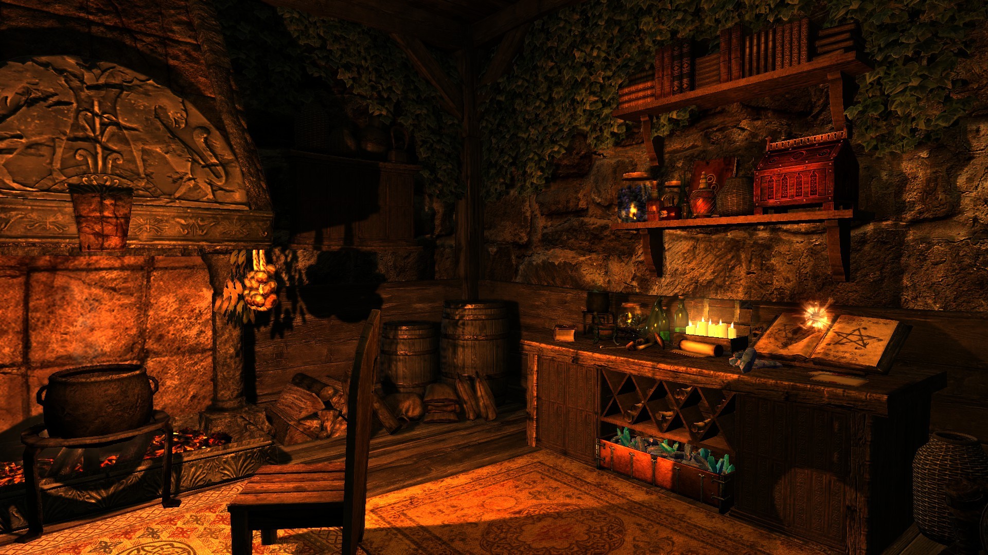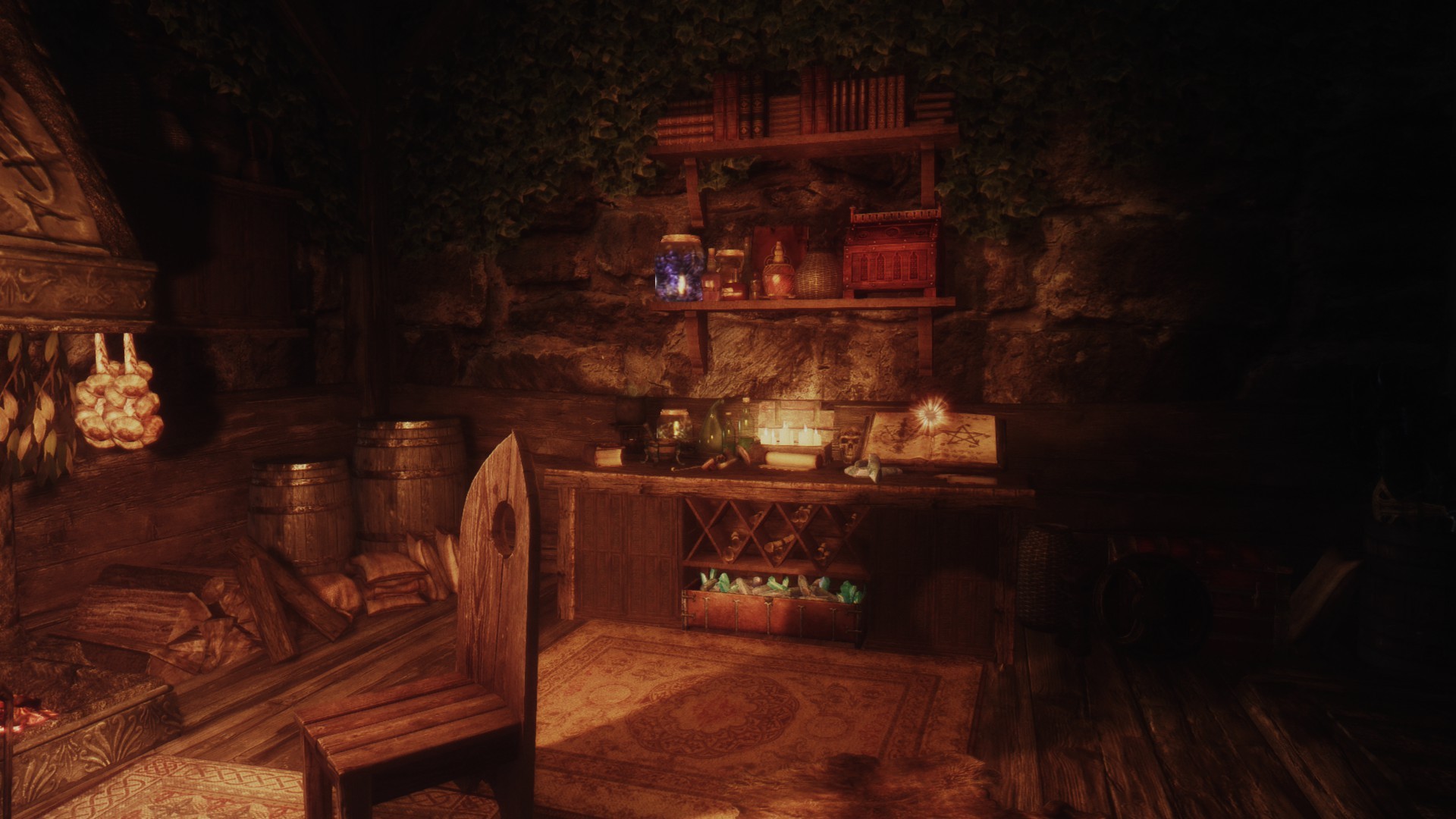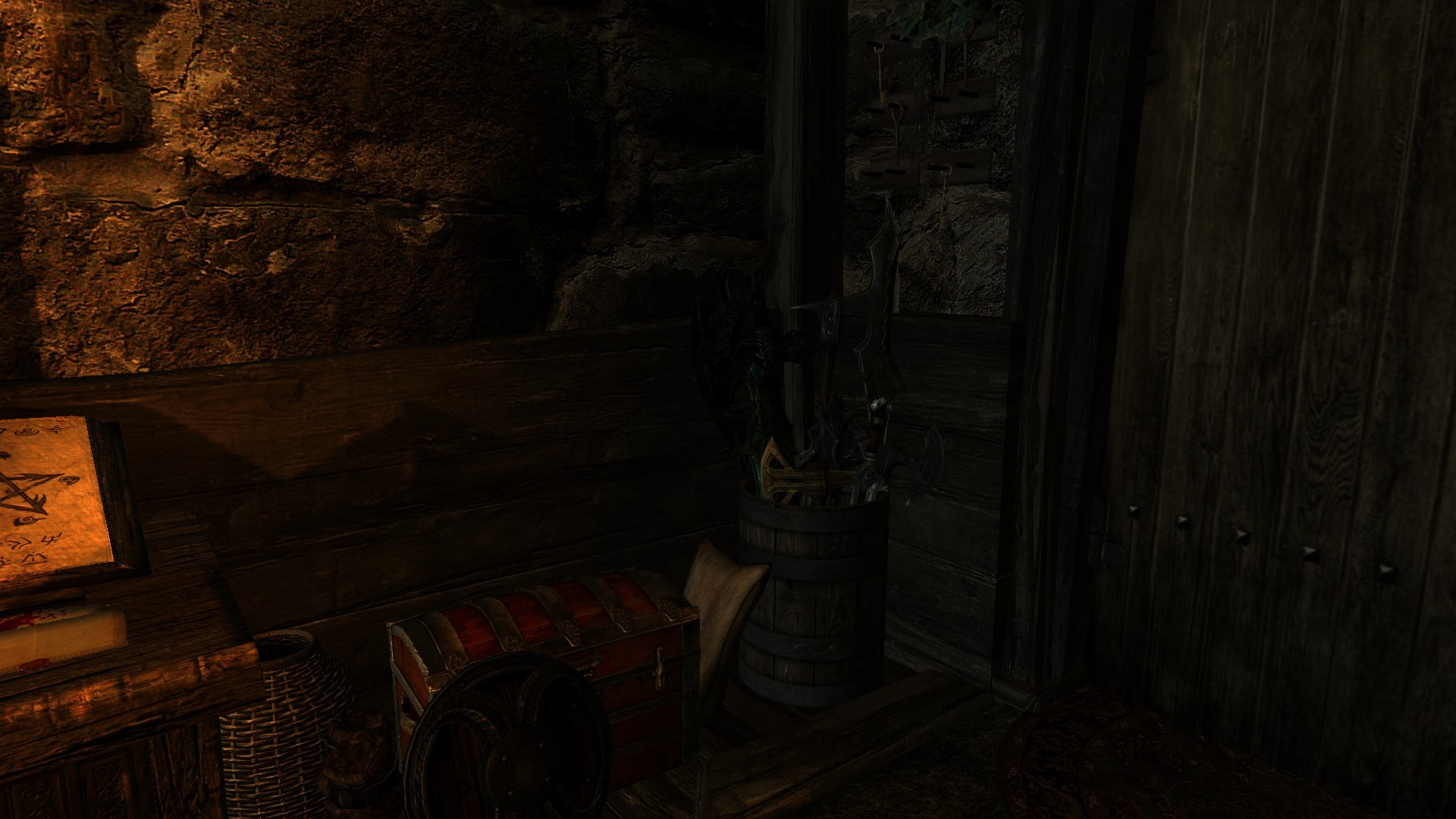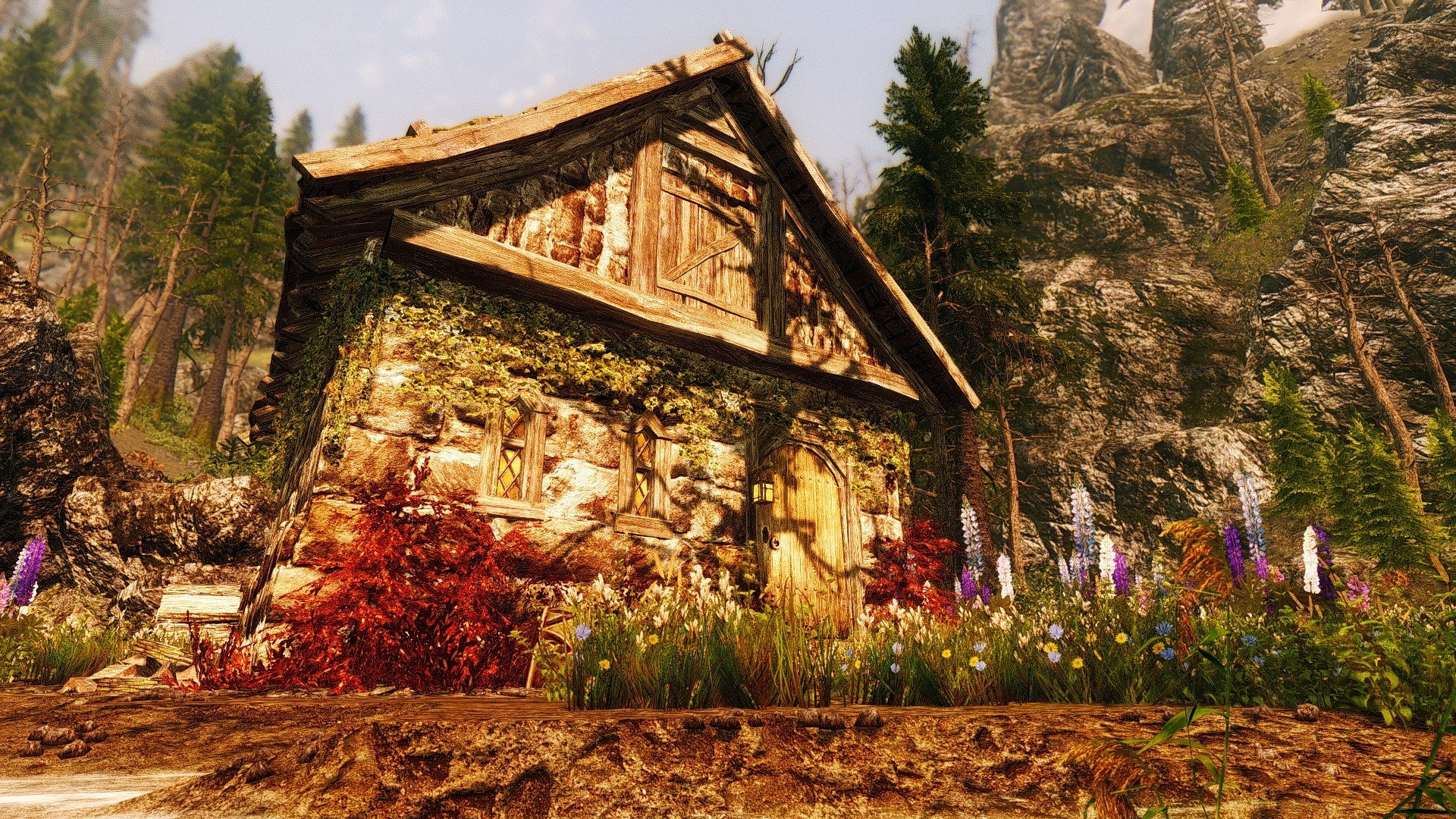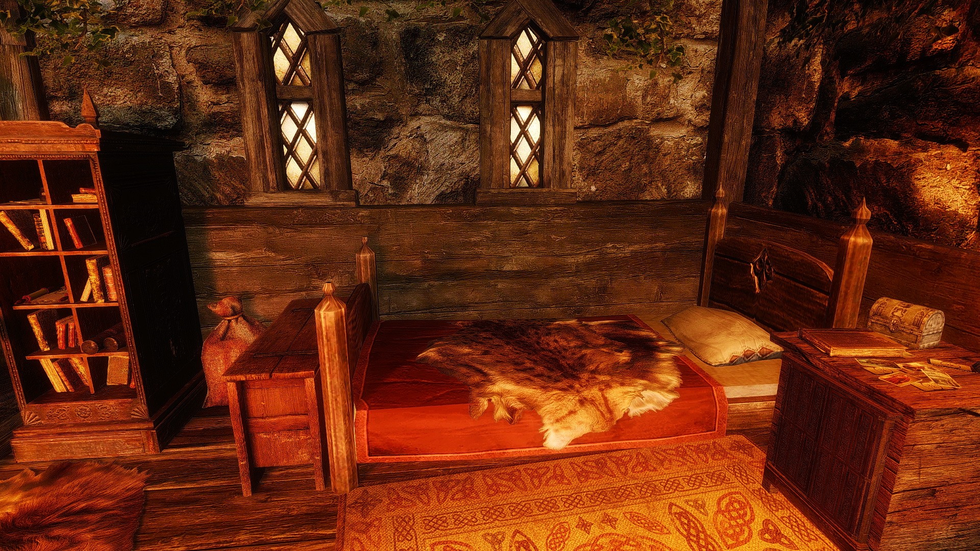 Это очень простой домик с одной комнатой и кроватью, котелком для приготовления еды, а также столами для занятий алхимией и зачарованием. Кузницу вы найдете снаружи. В доме полно безопасных хранилищ. Снаружи вы также найдете два фонаря, которые можно зажечь и погасить. В доме проложен навмеш, так что спутники смогут зайти внутрь